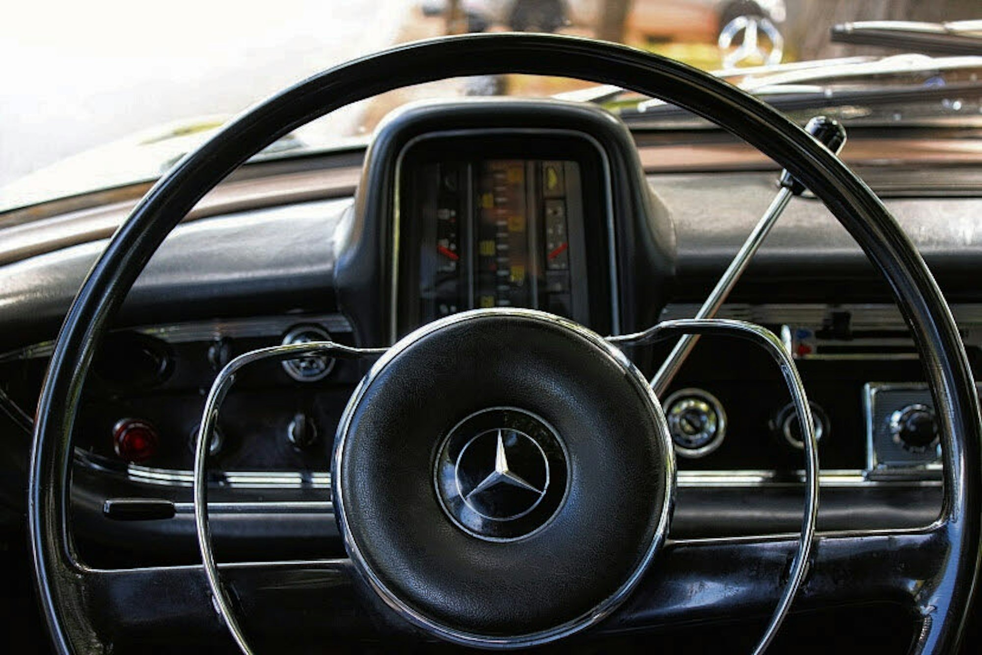 Er bräuchte einen neuen Außenspiegel. Dann sind wir zwei dahin und haben dort den Mercedes gesehen, der sofort alte Erinnerungen in mir weckte. Das Motorgeräusch war einfach toll. Erst sind wir weiter gegangen, um weiter nach dem Außenspiegel zu suchen. Den haben wir aber nicht gefunden und sind wieder zum Benz zurückgegangen. Über den Preis bin ich mit dem Verkäufer schnell einig geworden, weil ich ihm noch das Angebot machte, zusammen mit Freunden den ersten Motor von Nicolaus August Otto von 1864 bei der Deutz-AG in Betrieb anzuschauen. Da hatte ich schon gewonnen. Das kann er: Mit seinen 55 PS und der schweren Stahlkarosserie zieht er keinen Hering vom Teller. Aber genau das ist das Schöne daran. Ich bin eigentlich ein ungeduldiger Autofahrer. Wenn die dritte Ampel nacheinander rot ist, werde ich schon nervös. Mit diesem Auto ist das anders. Ich rege mich nicht auf, sondern fahre gemütlich durch die Stadt oder das Bergische Land. Der Wagen ist für die Nerven gut. Das kann er nicht: Sie müssen sich überlegen, wann Sie bremsen. Das ist nicht wie bei den neuen Autos, wo Sie auf die Bremse drücken und das Auto steht. Sie müssen frühzeitig bremsen, das dauert alles ein bisschen länger. Der Wagen ist eben auf dem technischen Stand von 1965. Das Problem ist auch, dass er keine Servolenkung hat. Im Stand zu lenken ist keine Freude. Und wenn nicht irgendwo zwei Parkplätze nebeneinander frei sind, parke ich nicht.