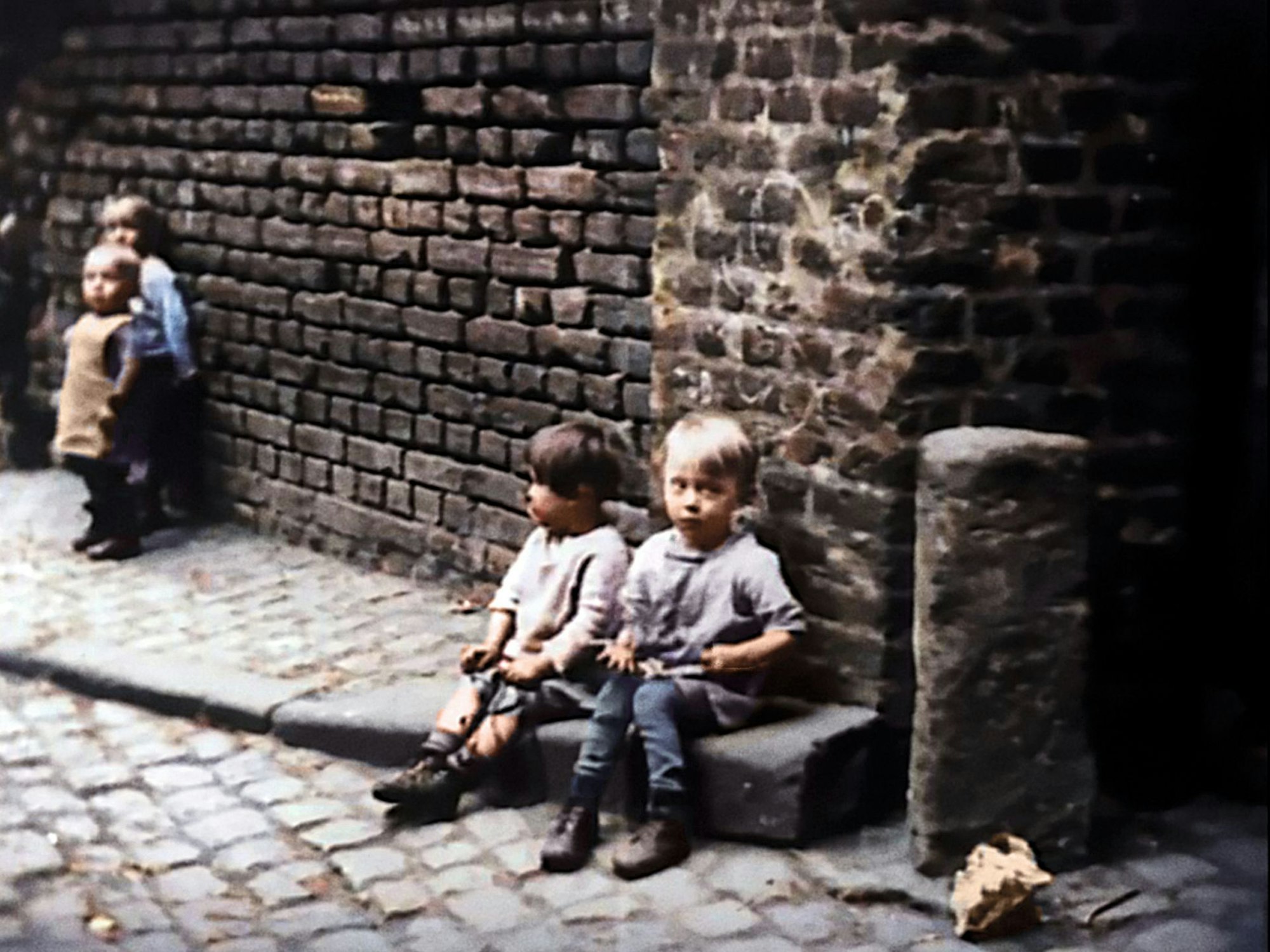 Während der erste Teil Aufnahmen aus der Kaiserzeit zeigt, geht es in den beiden anderen Teilen durch die Innenstadt der 1920-er Jahre und die Kölner Veedel. Am Dom wird die Petersglocke, der „Dicke Pitter“, angeliefert. Am Hansaring entsteht eines der ersten Hochhäuser Deutschlands, das Müngersdorfer Stadion ist noch ganz neu. In den Gassen und Hinterhöfen am Eigelstein oder im Martinsviertel herrscht währenddessen die pure Not. Viele Mütter sind alleinerziehend, weil die Väter den Ersten Weltkrieg nicht überlebt haben. Kinder wachsen in Armut auf. In der Schokoladenfabrik schuften junge Mädchen bis zu 70 Stunden pro Woche. Ein Arbeiter klettert ohne jeden Schutz auf der Baustelle für die erste Mülheimer Brücke herum. „Es ist eine Arbeitswelt, über die man im Unterricht reden kann“, so Witich Rossmann vom Kuratorium der Filmerbe-Stiftung.