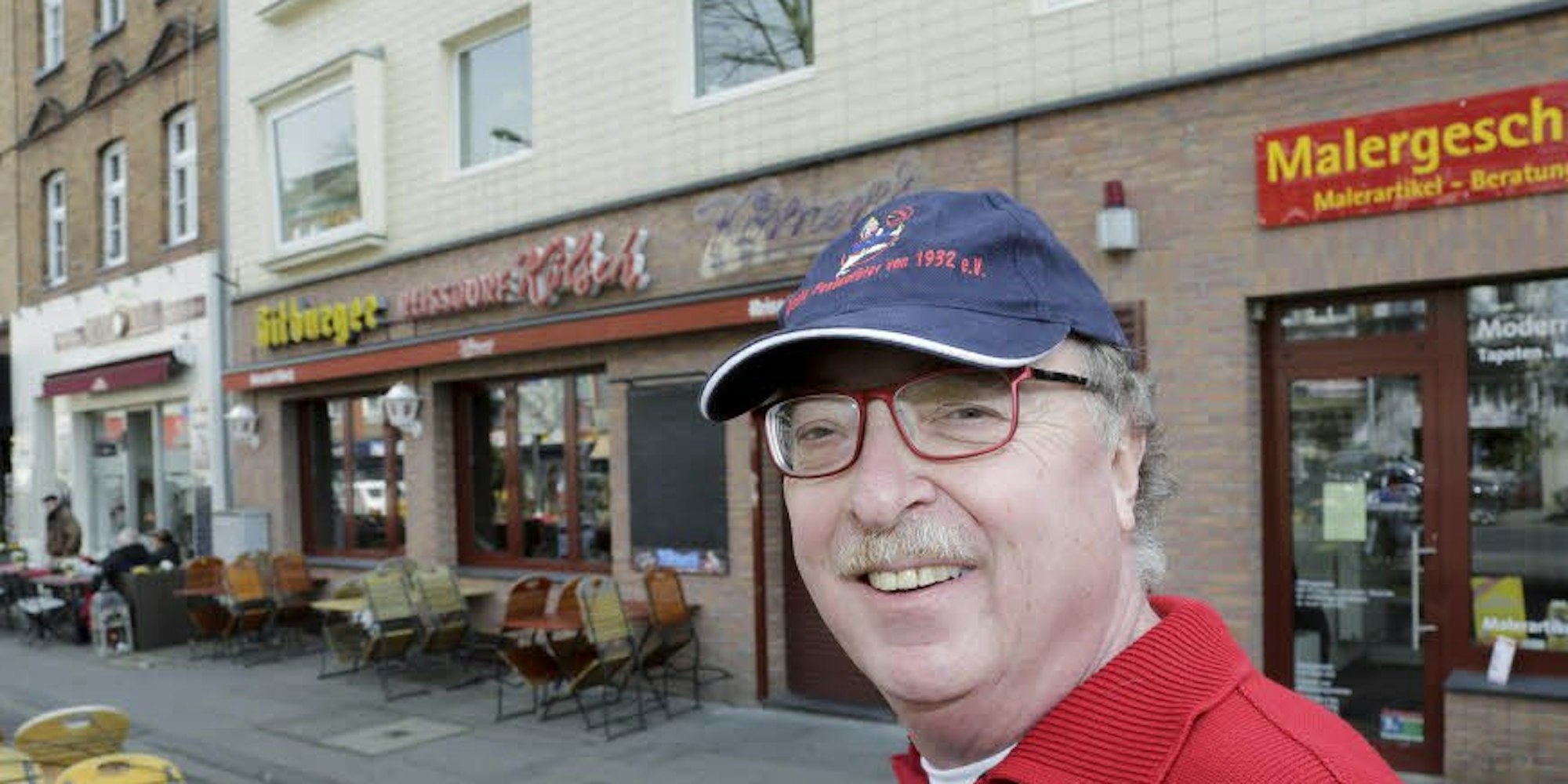 Wir schlendern zu den Geschäften auf der Stammheimer Straße. Wo einst die Konditorei Weiß war, in der sich Junggeburth als Kind mit Vorliebe „Mohnbrötchen ohne alles“ kaufte, ist heute die Bäckereikette Merzenich vertreten. Schräg gegenüber ist die Zeit schon eher stehen geblieben: Die Gaststätte „Körner’s“ habe zwar früher „Rörig“ geheißen, sagt Junggeburth, legt die Hand ans Schaufenster und blickt hinein, „aber die Theke, der Boden: alles noch wie damals.“