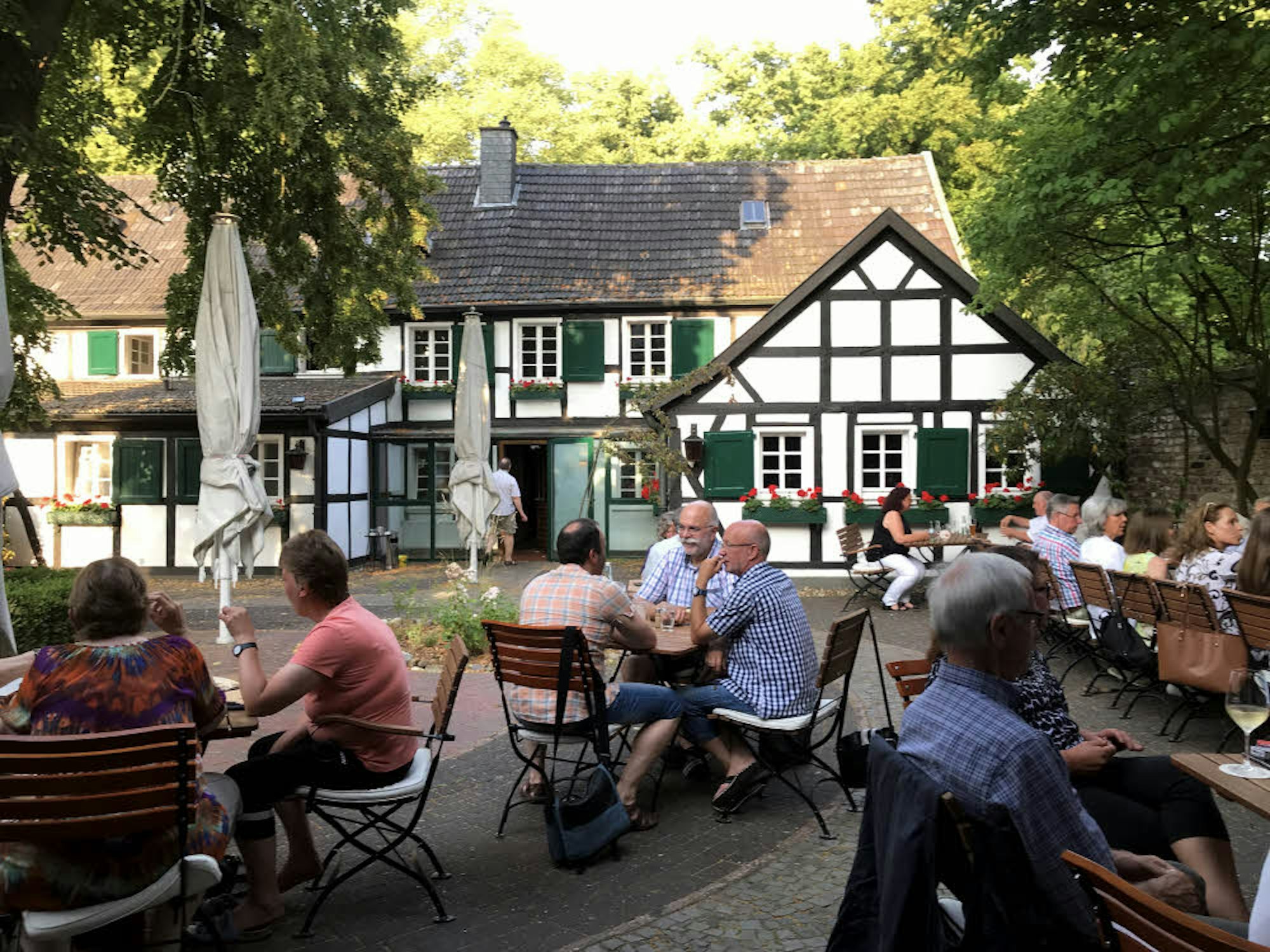 Das Merheimer Traditionslokal „Em Ahle Kohberg“ bietet im lauschigen Biergarten schattige Plätze.