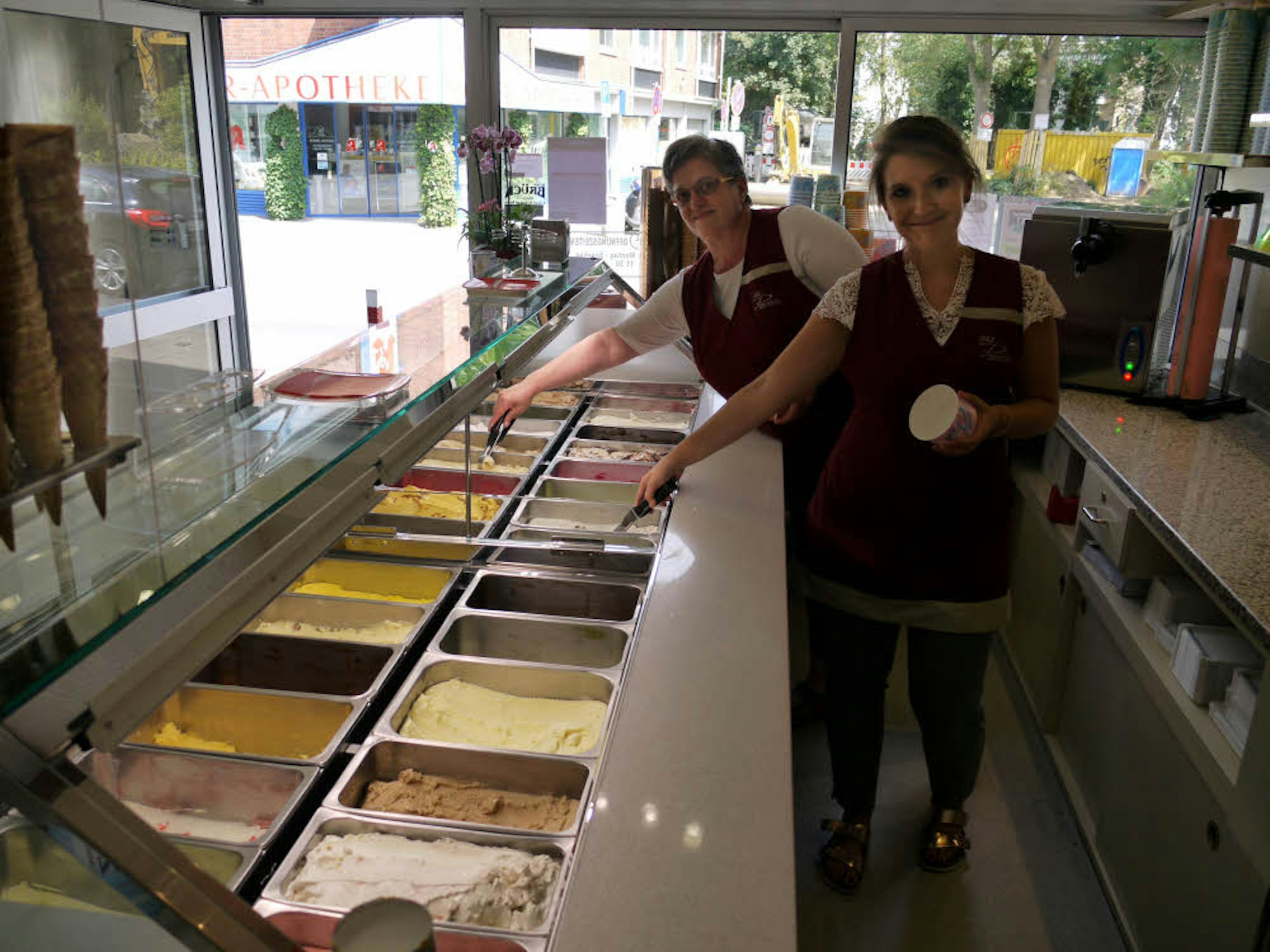 Wer das vermeintlich beste Eis auf der Schäl Sick schlecken will, muss Zeit mitbringen. Denn vor dem Eiscafé Panciera der Familie Moscetti in Brück steht, genau wie an der Filiale in Dellbrück, stets eine lange Warteschlange. Sitzen kann man in dem Brücker Laden nicht. Da gibt’s nur Eis in der „To go“-Version. In Dellbrück gibt es zwar Tische, aber keine Bedienung. Doch all das nimmt man für die 29 verschiedenen Sorten gerne in Kauf. Neu in diesem Jahr sind Zartbitter mit Orange und Salziges Karamell. (NR)