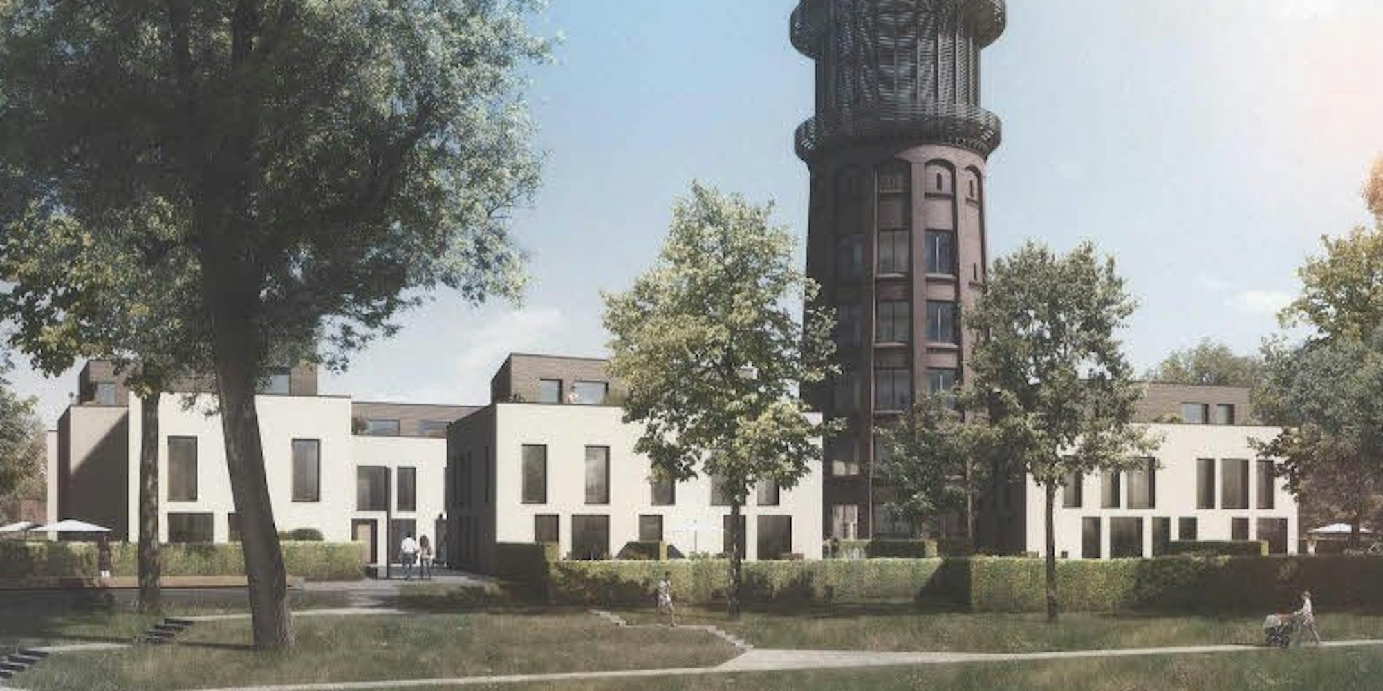 Die aktuellen Bauanträge – einer für den Wasserturm und einer für neu zu bauende Wohnhäuser – tragen diesen Bedenken der Bauverwaltung Rechnung. Geplant ist, den Wasserturm aufzustocken. Im Inneren plant der Bauherr Büroräume mit einer Gesamtfläche von 1300 Quadratmetern. Außerdem will der Eigentümer auf dem etwa 3000 Quadratmeter großen Gelände fünf zweigeschossige Häuser mit 13 Wohnungen errichten.