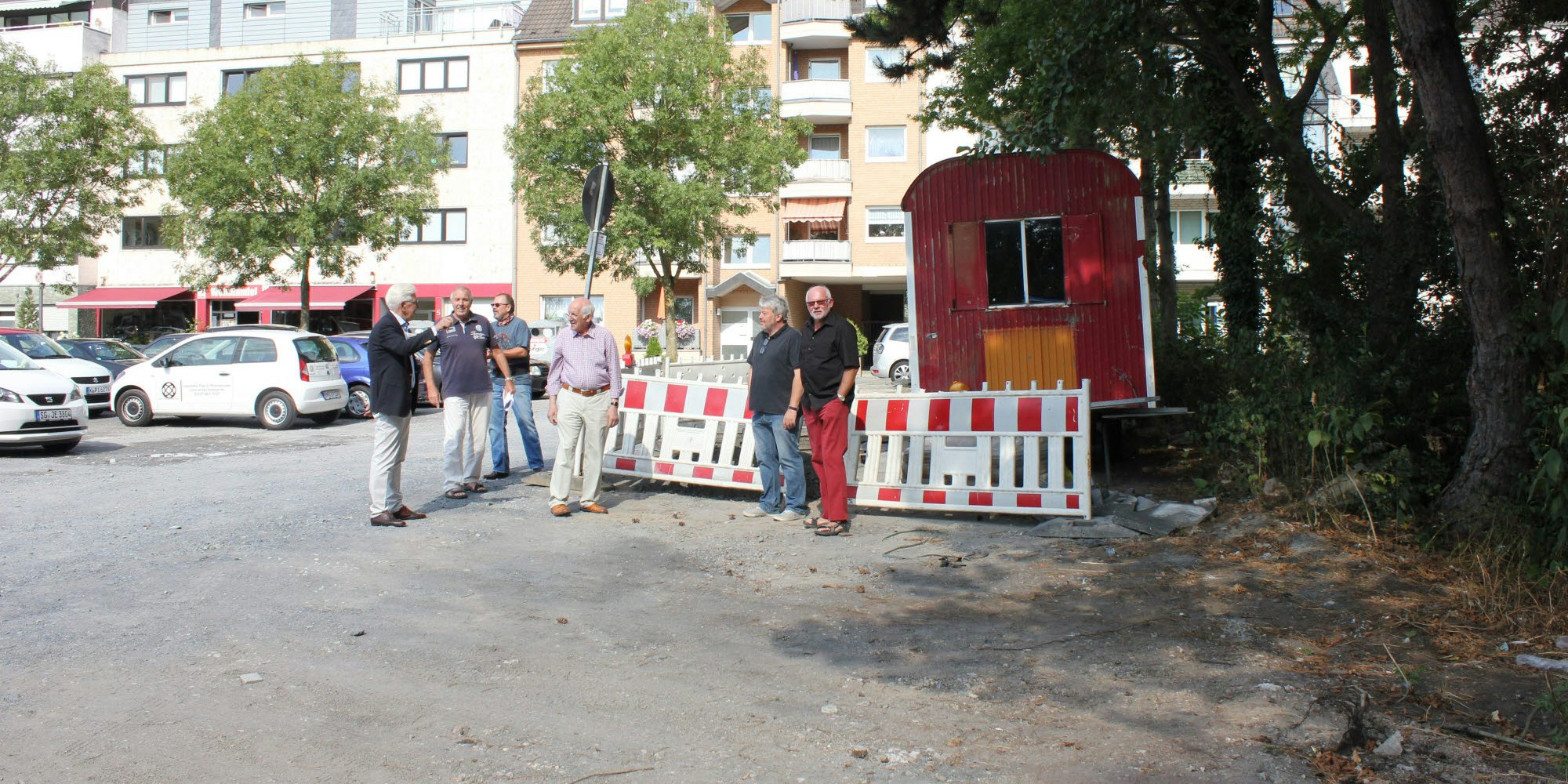 Politiker, Mitglieder des Bürgervereins und Geschäftsleute warten auf den Beginn der Bauarbeiten .