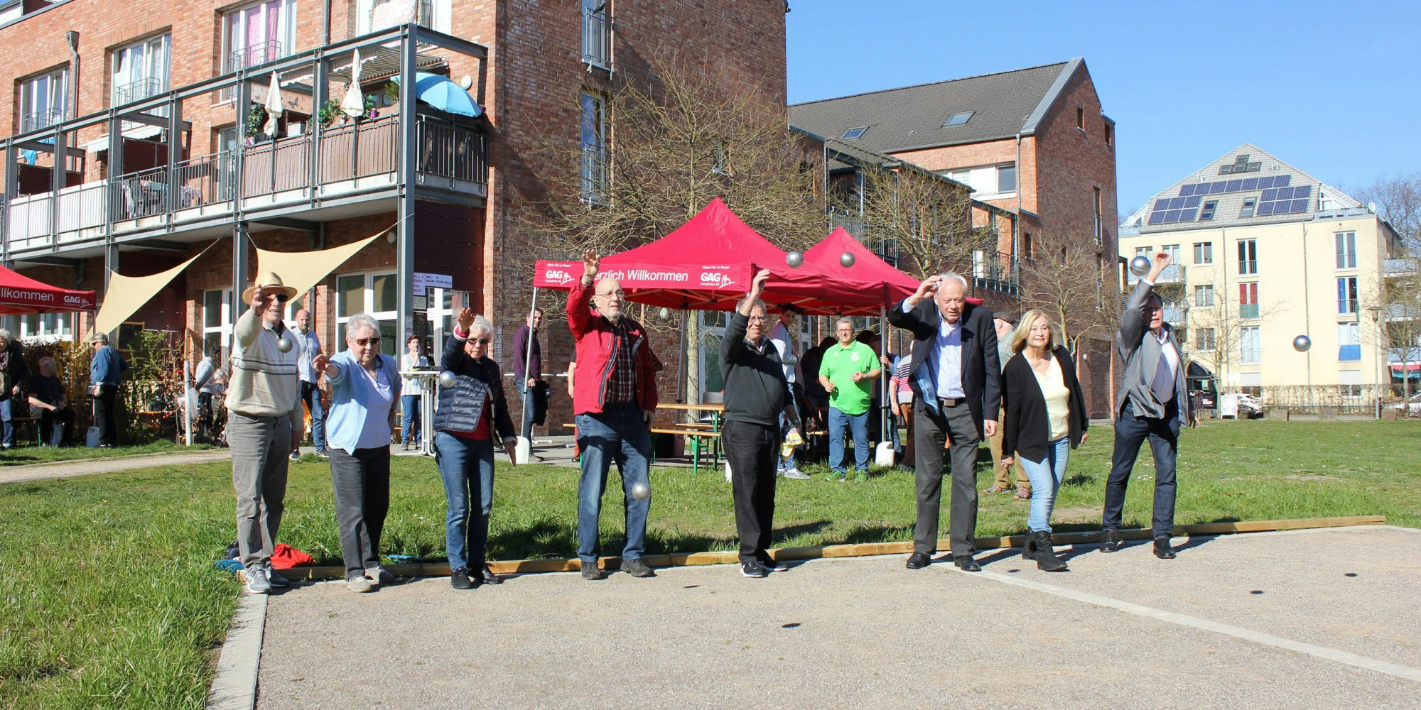Köln-Dünnwald – Die Bewohner der Donewald-Siedlung können jetzt eine ruhige Kugel schieben. Mülheims Bezirksbürgermeister Norbert Fuchs, Mitglieder der Seniorenvertretung des Stadtbezirks, Mitarbeiter des GAG-Sozialmanagements und Anwohner eröffneten eine neue Boule-Anlage an der Auguste-Kowalski-Straße.