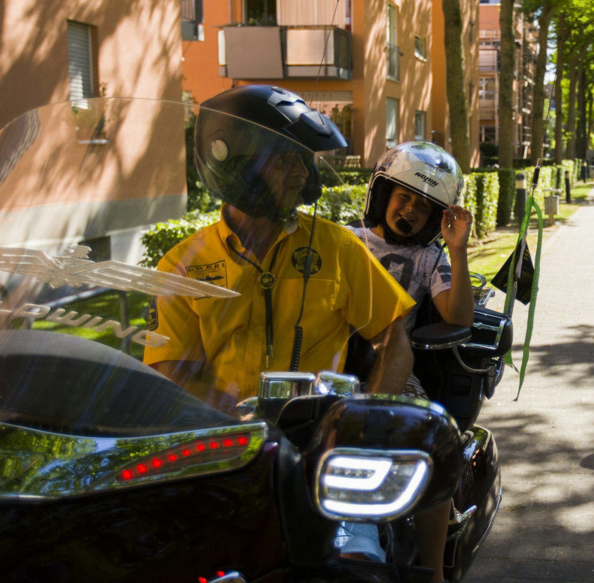 Während viele Gäste bei Kaffee, Kölsch, Kuchen und Gegrilltem über die Hospizarbeit plauderten, nutzten einige der anwesenden Kinder die Gelegenheit, auf einer der schweren Gold Wing oder Harley Davidson-Maschinen eines Kölner Motorrad-Clubs einige Runden um die Häuser zu drehen. Für den zwölfjährigen Nicholas war es das größte, mal auf einem so großen Motorrad mitfahren zu dürfen. Mit Helm natürlich. Und ein bisschen Knieschlottern.