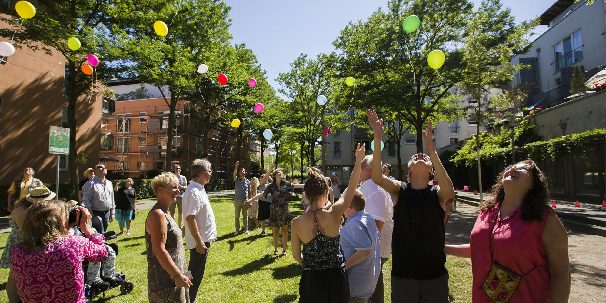 Es gehe bei der kostenfreien Unterstützung auch um die Entlastung der betroffenen Familien, sagt Maren Wleklinski. Schauspielerin Jasmin Schwiers kennt den Kölner Kinder- und Jugendhospizdienst seit der Gründung im Jahr 2006. Für den Deutschen Dachverband ist sie als Botschafterin unterwegs und trägt auf diese Weise mit dazu bei, dass immer mehr Menschen von der Kinderhospizarbeit erfahren. Sie sehe ihre Aufgabe darin, mit Missverständnissen aufzuräumen und Menschen ins Gespräch zu bringen. Für alle Kinder, die nicht mehr an der Jubiläumsfeier teilnehmen konnten, zündete Schwiers beim Jubiläumsfest eine Kerze an. Später starteten bunte Luftballons in den Himmel - ein stiller Gruß nach oben.