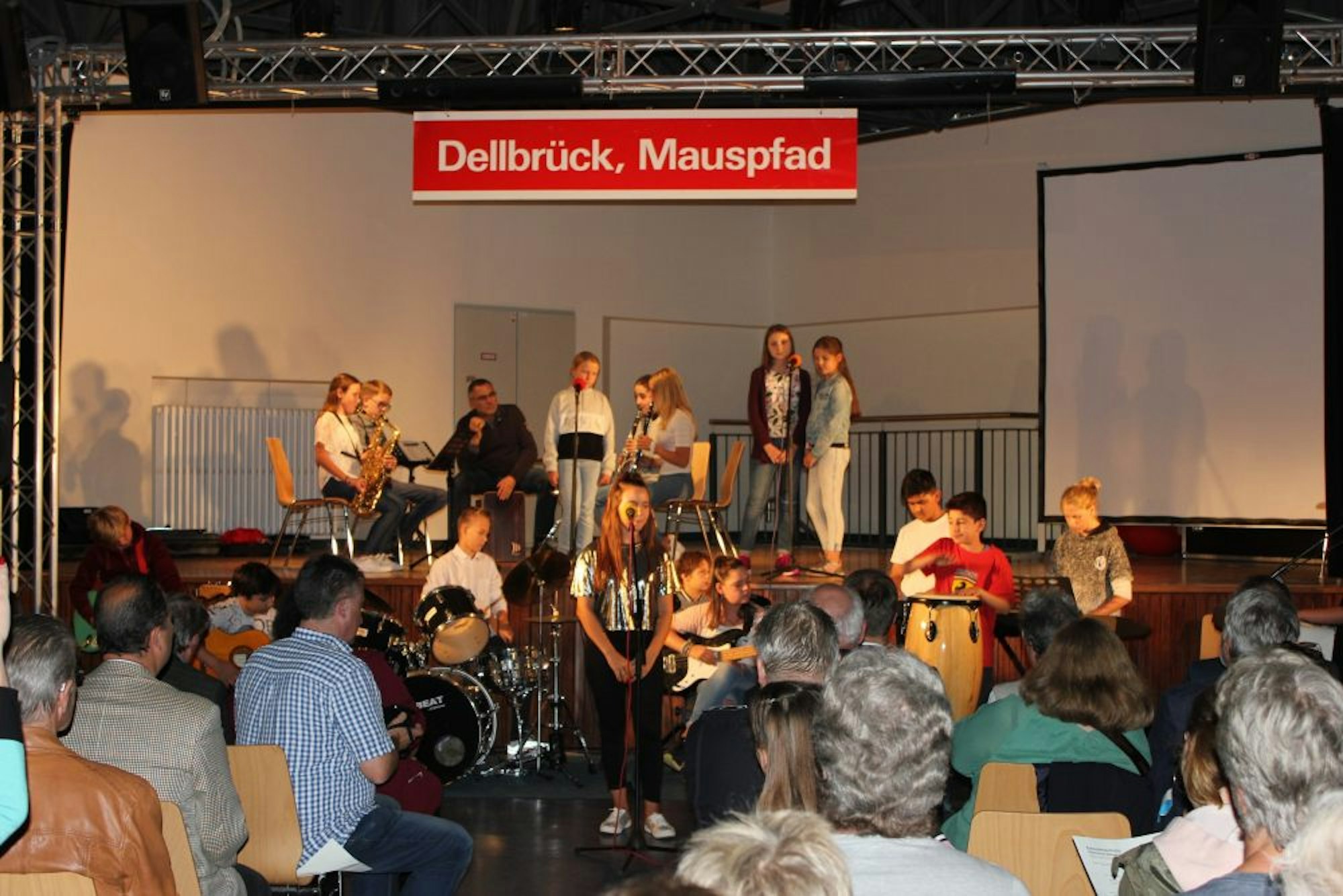 Die „Schulband 198“ bei der Uraufführung des neuen Schullieds