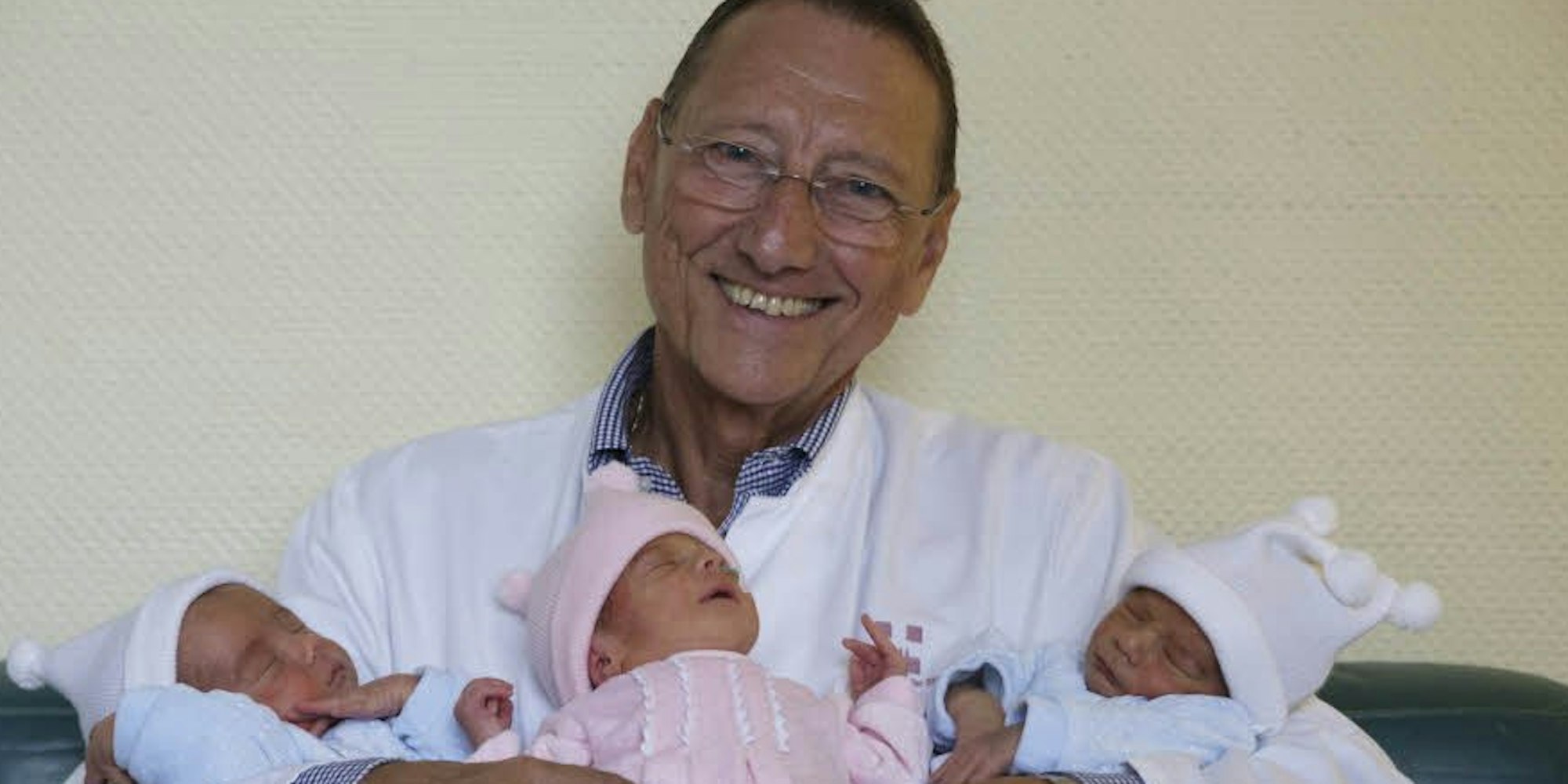Dion, Luisa und Diego (v.l.) sind die letzten Drillinge, denen Professor Friedrich Wolff vor seinem Ruhestand zur Geburt verhalf.