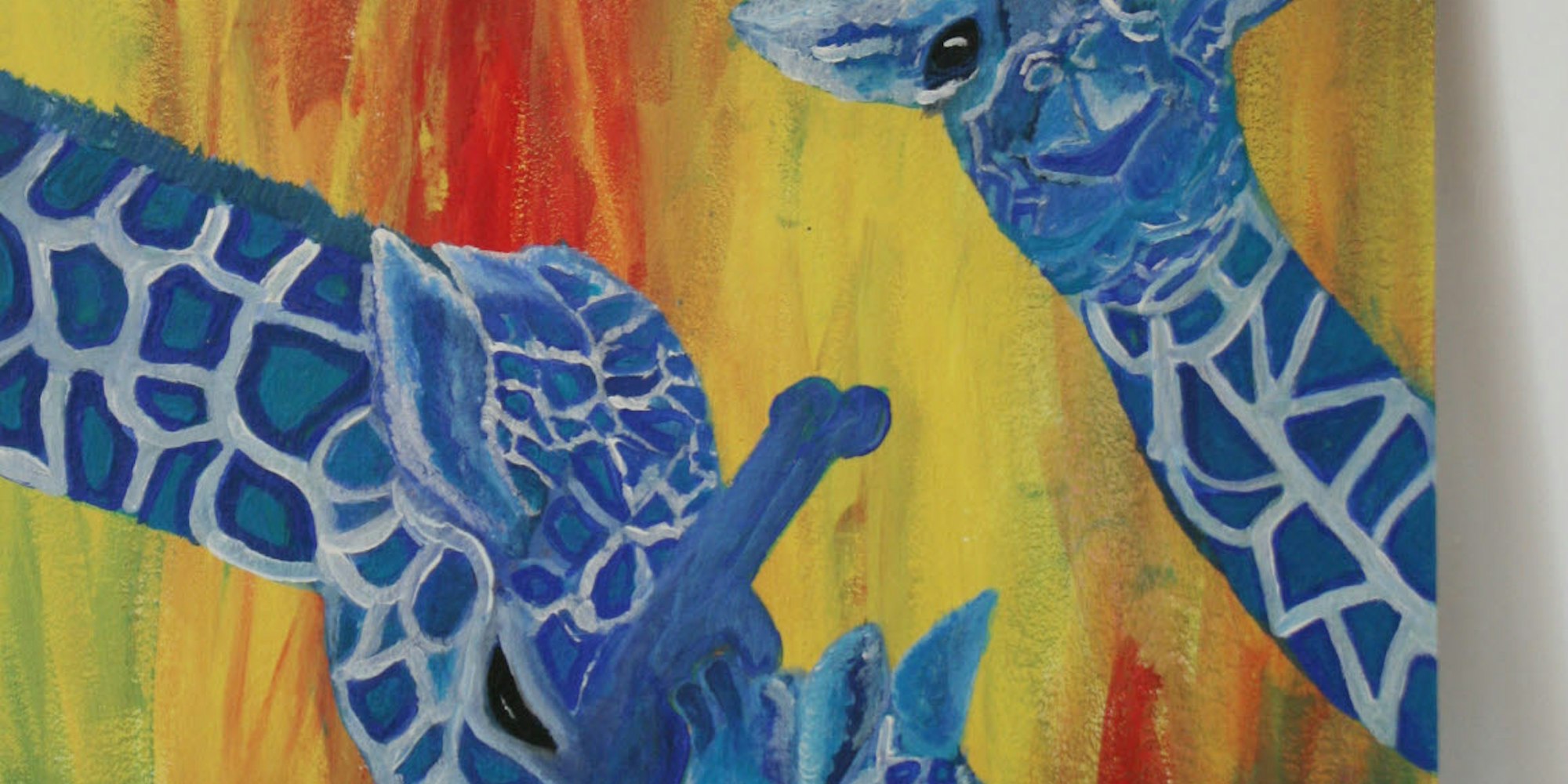 Schnell wird deutlich, dass es Heike Büngener nicht nur um die kleine Welt in Buchforst geht, sondern deren Einbettung in die großen Zusammenhänge der ganzen Welt. So schlägt sie über die Plastikflaschen, von denen unzählige täglich im Supermarkt gekauft werden, eine Brücke zu den Machenschaften großer Konzerne und vertrocknenden Landschaften in Afrika. Und mit kleinen Fetzen von Plastikmüll, die sie gesammelt hat, stellt sie mit künstlerischen Mitteln eine Beziehung her zwischen der ganz alltäglichen Müllproduktion in ihrem Stadtteil, der Verschmutzung der Meere und den Unmengen von Kunststoffen in Fischbäuchen. Über den Zustand der Welt wird überall entschieden, auch in Kölns kleinsten Stadtteil Buchforst, lautet die Erkenntnis. Und die Verantwortung dafür liegt bei jedem einzelnen Menschen. Wie elementar für die gesellschaftliche Entwicklung Erziehung, Bildung und gemeinsame kulturelle Werte sind, macht die Künstlerin schließlich deutlich mit Motiven zur Gewalt im Tierreich. Zwei Blaumeisen zerren streitend an einem Regenwurm. Und eine Haselmaus hat den Tod gefunden im Maul eines Sperbers. Die Tendenz zur Gewalt, die überall in der Natur herrscht, muss beim Menschen gebändigt werden, so Büngeners Botschaft. Was aber, fragt man sich schließlich vor einem großen Gemälde, haben blaue Giraffen mit Buchforst zu tun? Die einfache Antwort lautet: Egal wo man ist, ob in Buchforst oder anderswo, man kann sich künstlerisch immer überall hinträumen, auch in ein Land, wo es lächelnde blaue Giraffen gibt.
