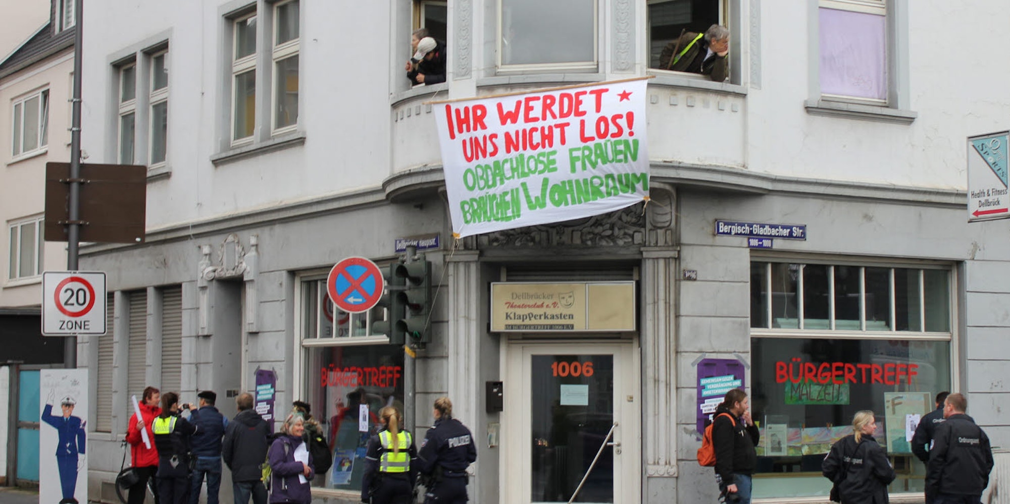 Kippe und seine Mitstreiter hätten sich an ihn wenden können: „Wir hätten ihm die Möglichkeit gegeben, legal ins Haus zu kommen, das Transparent anzubringen und so auf die Lage der Frauen aufmerksam zu machen.“ Der Vorsitzende des Bürgervereins Dellbrück, Engelbert Hock, reagierte etwas gelassener.