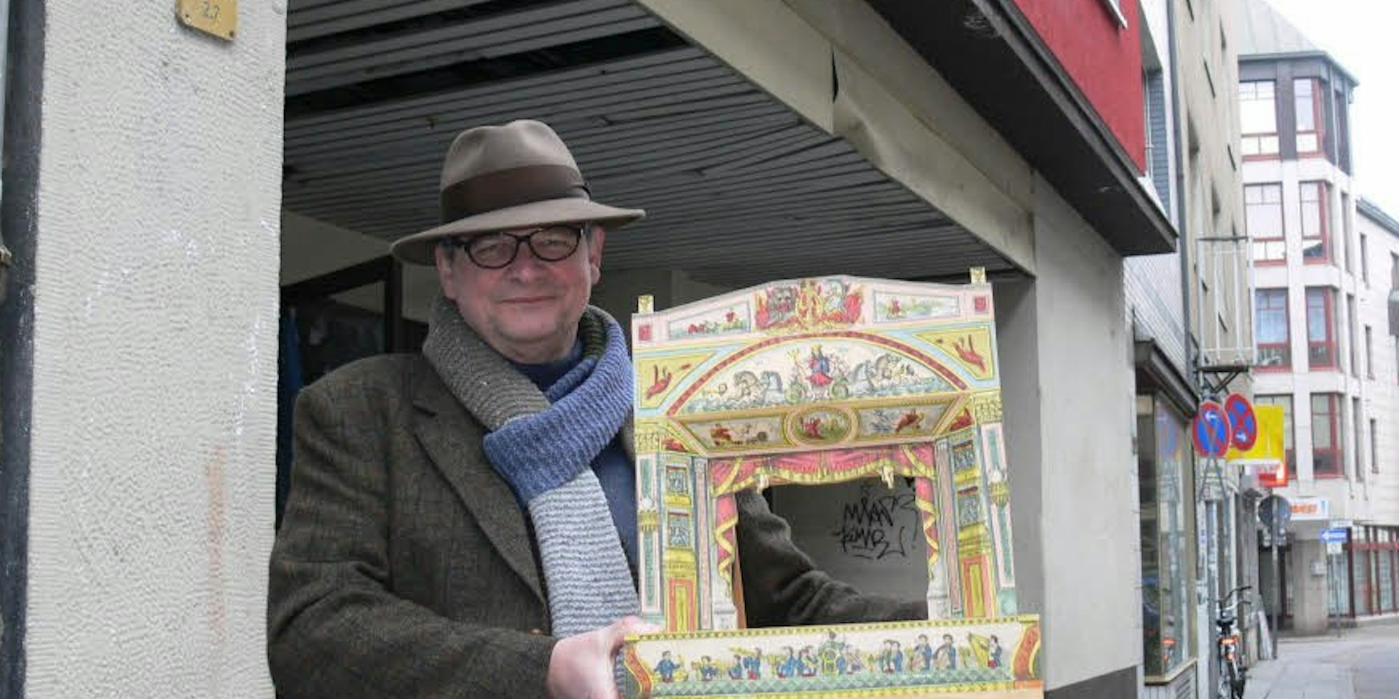 Peter Schauerte-Lüke wollte mit seinem Papiertheater an der Buchheimer Straße 24 auftreten – doch daraus wird nun nichts.