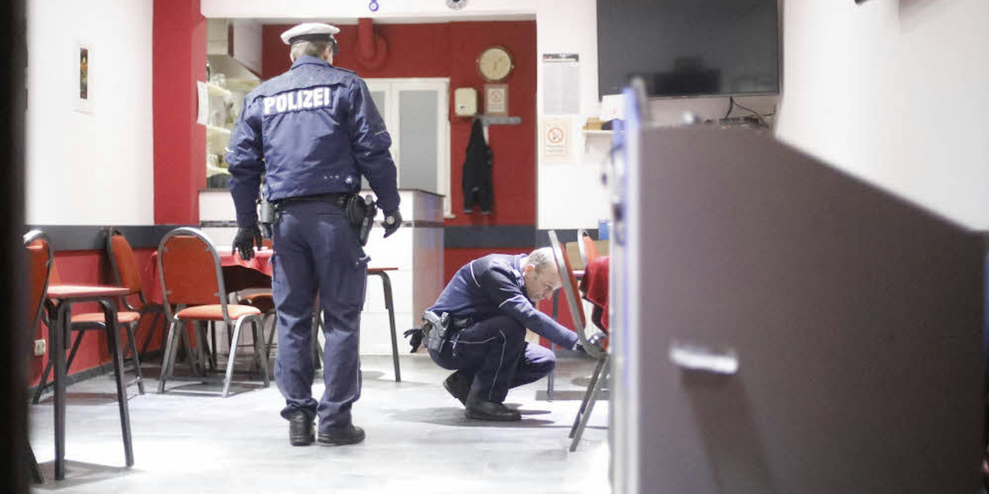 Polizisten sichern noch in der Nacht Spuren im Cafè.