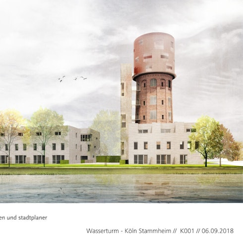 Wasserturm mit Blick auf den Rhein: Die Entwürfe für den neuen Luxus-Block in Köln-Stammheim.