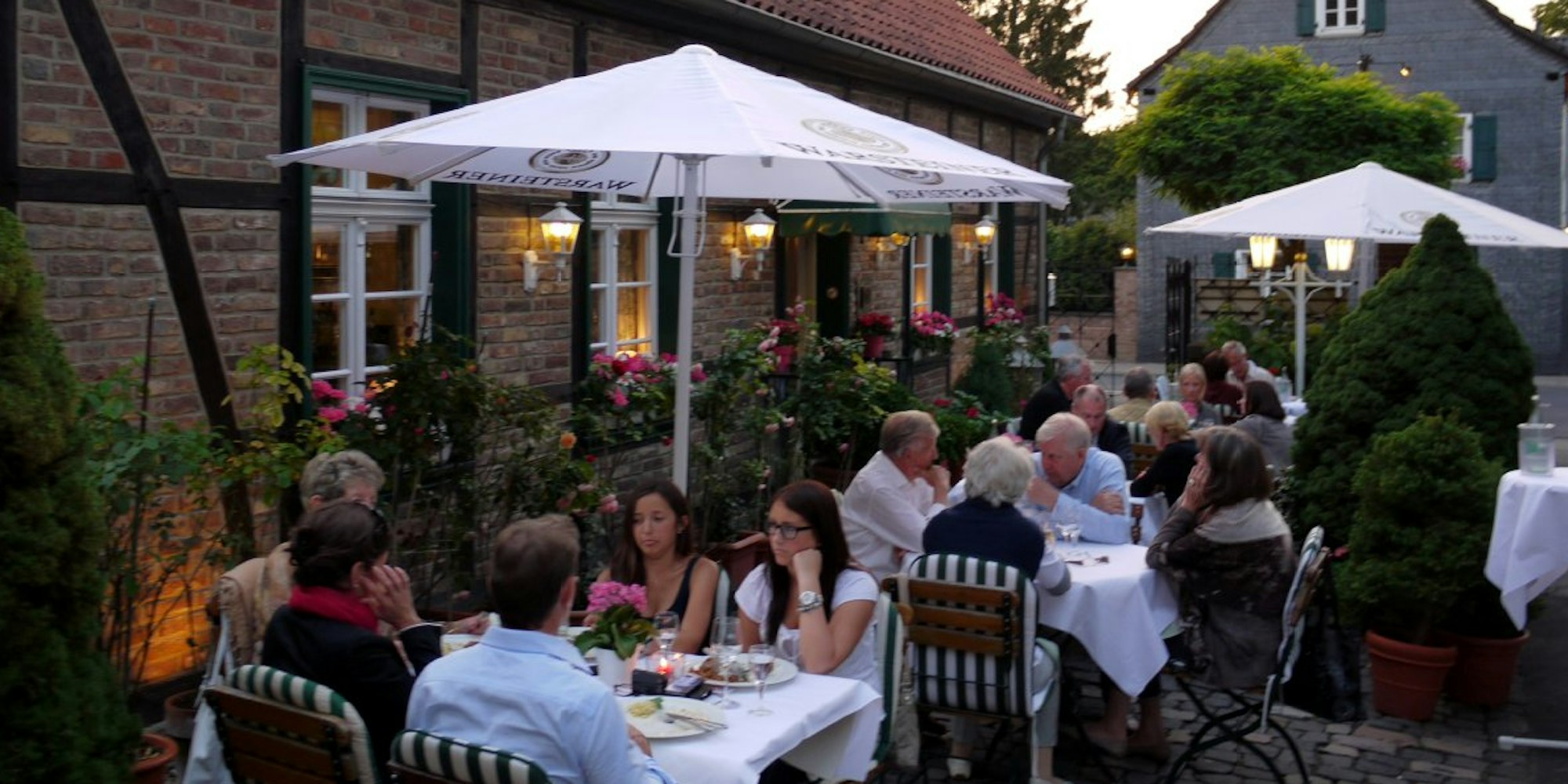 Der Biergarten vor dem Weinhas „Zur alten Schule“ ist ein romantisches Fleckchen Brück.