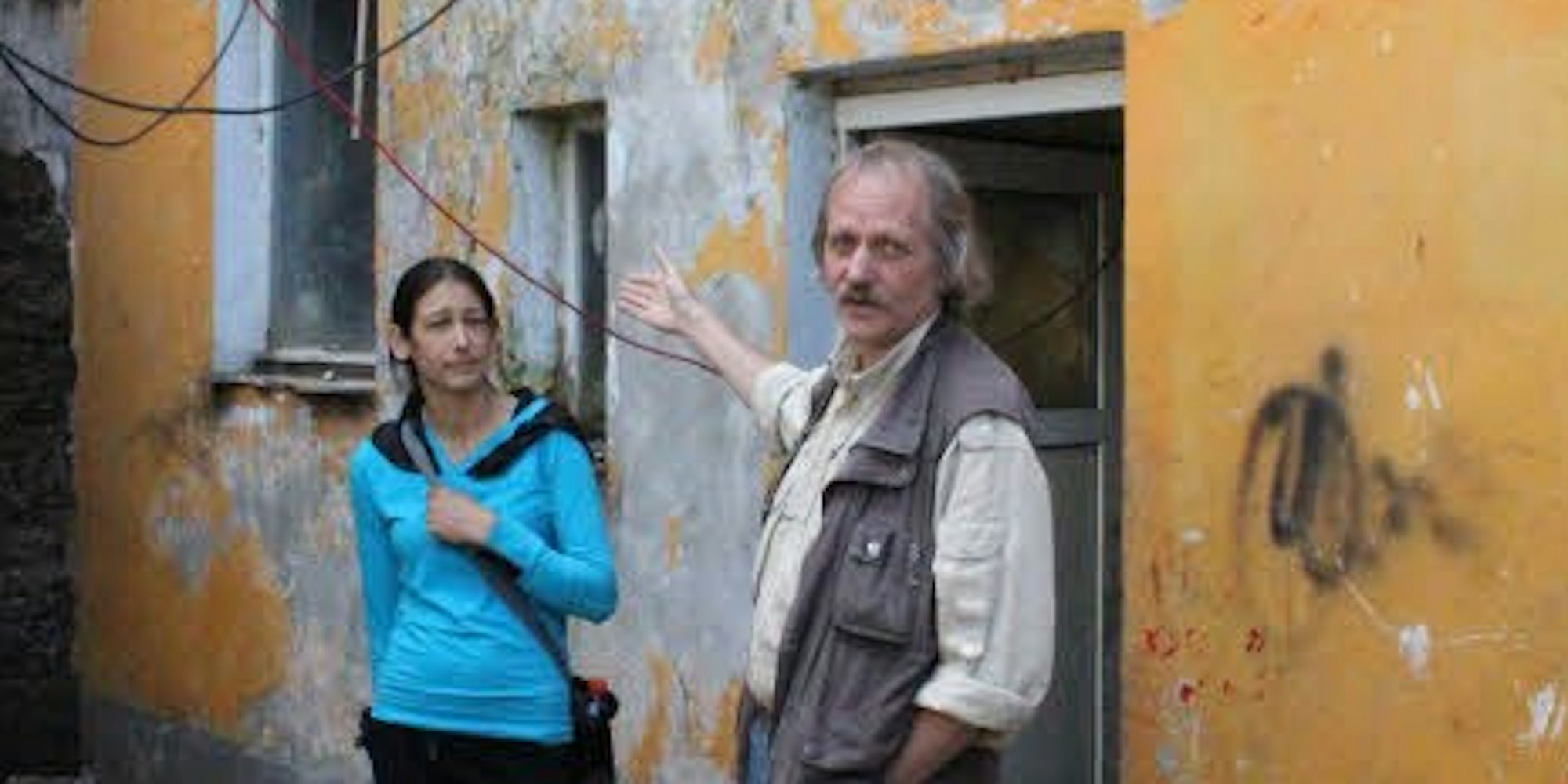Galy N. und Rüdiger Benninghaus im verwahrlosten Haushof.