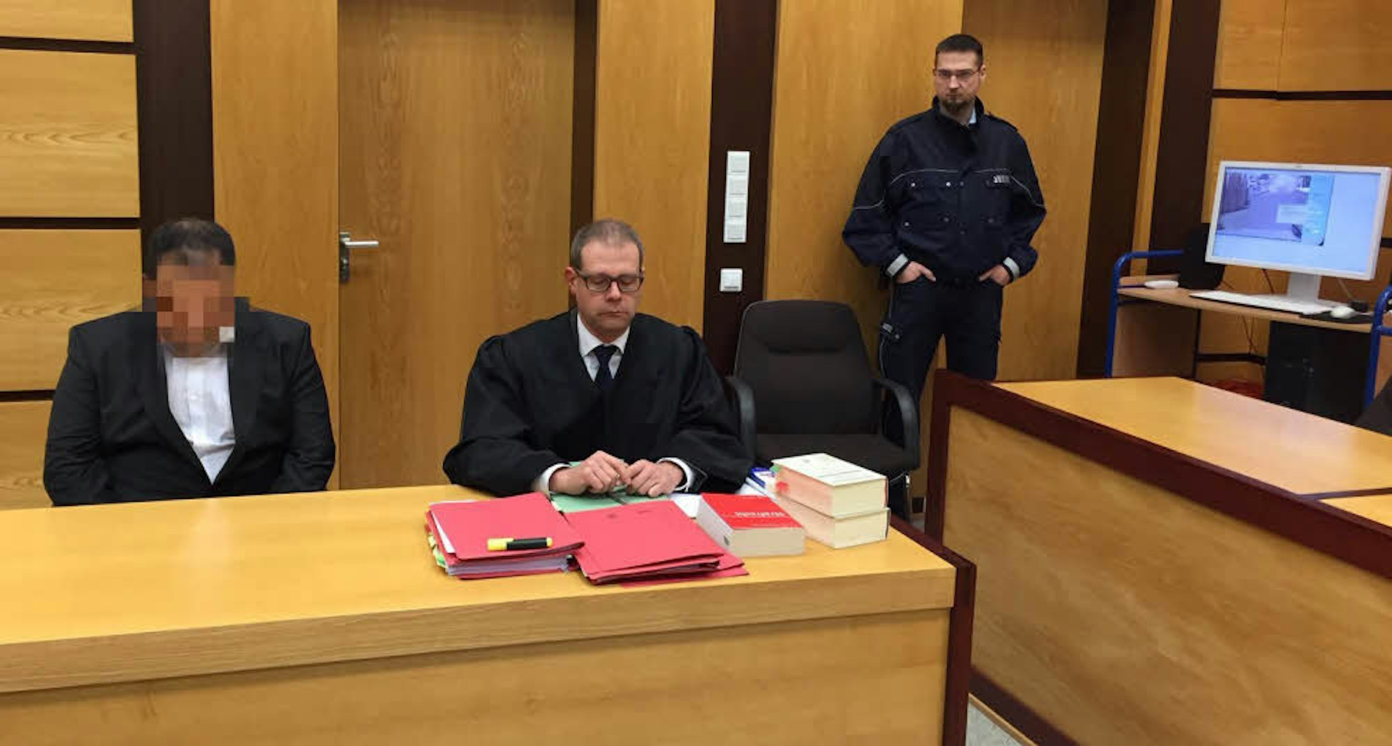 Der 34-jährige Hürther (l.) räumte ein zu schnell und über rotlichtzeigende Ampeln gefahren zu sein, weiß aber selbst nicht warum. Verteidigt wurde er vom Brühler Anwalt Stephan Nüsgen.