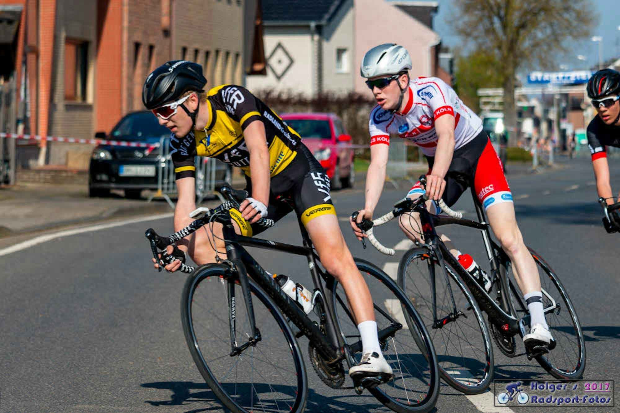 Im Rennen (rot-weißes Trikot).