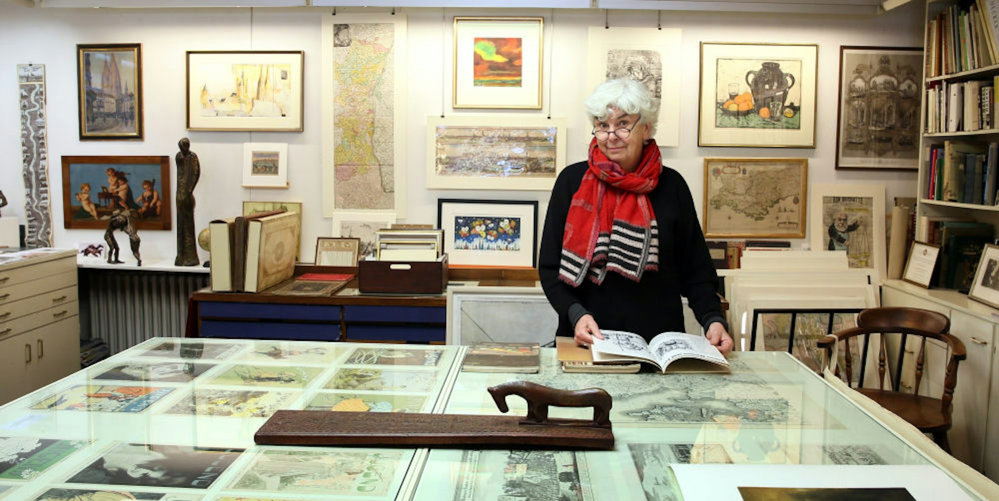 Angelika Herzogenrath in ihrer Kunsthandlung Goyert, die in diesem Jahr 100 Jahre alt geworden ist