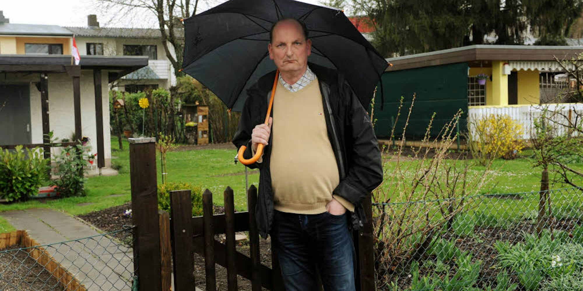 Mike Bellon vor der Kleingarten-Anlage An der Ling. Als er seinen Garten abgeben wollte, folgte ein böses Erwachen.