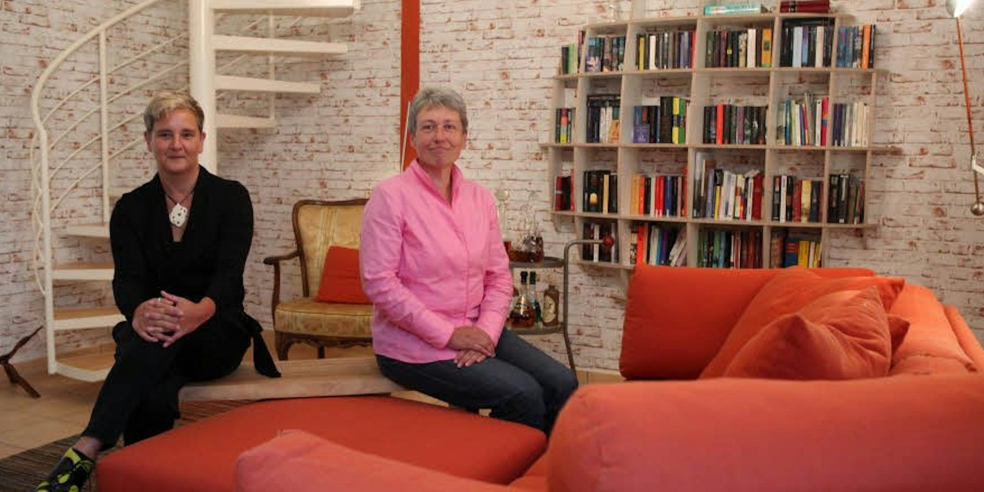 Sabine Gabus (l.) und Ulrike Steil im Gäste-Wohnzimmer