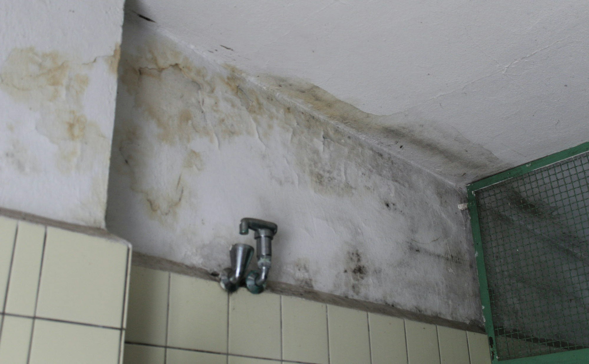Die Wand des Toilettenhäuschens ist dauerhaft feucht.