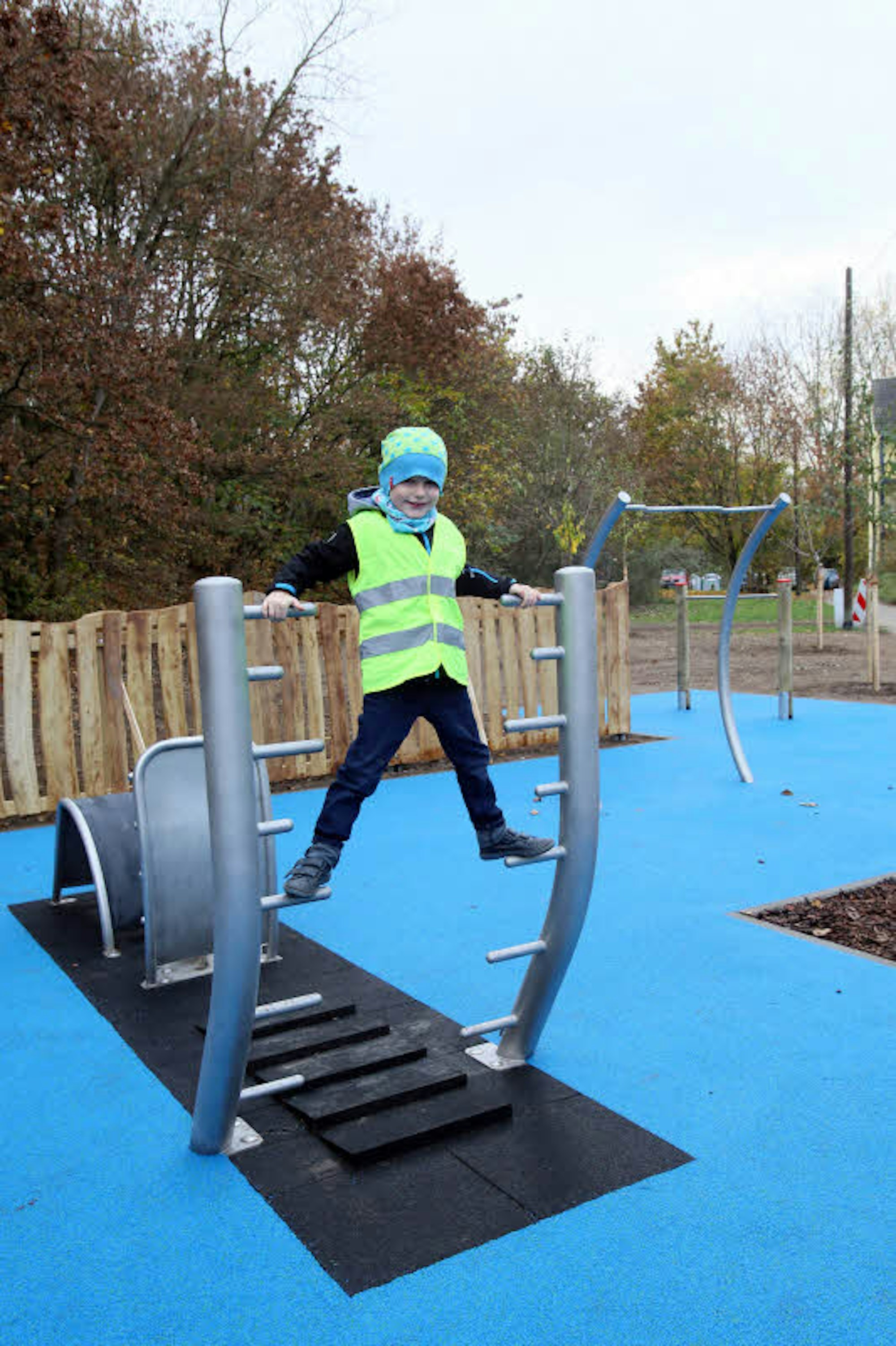 Der fünfjährige Liam ist vom Fitnessgeräte-Parcours begeistert.