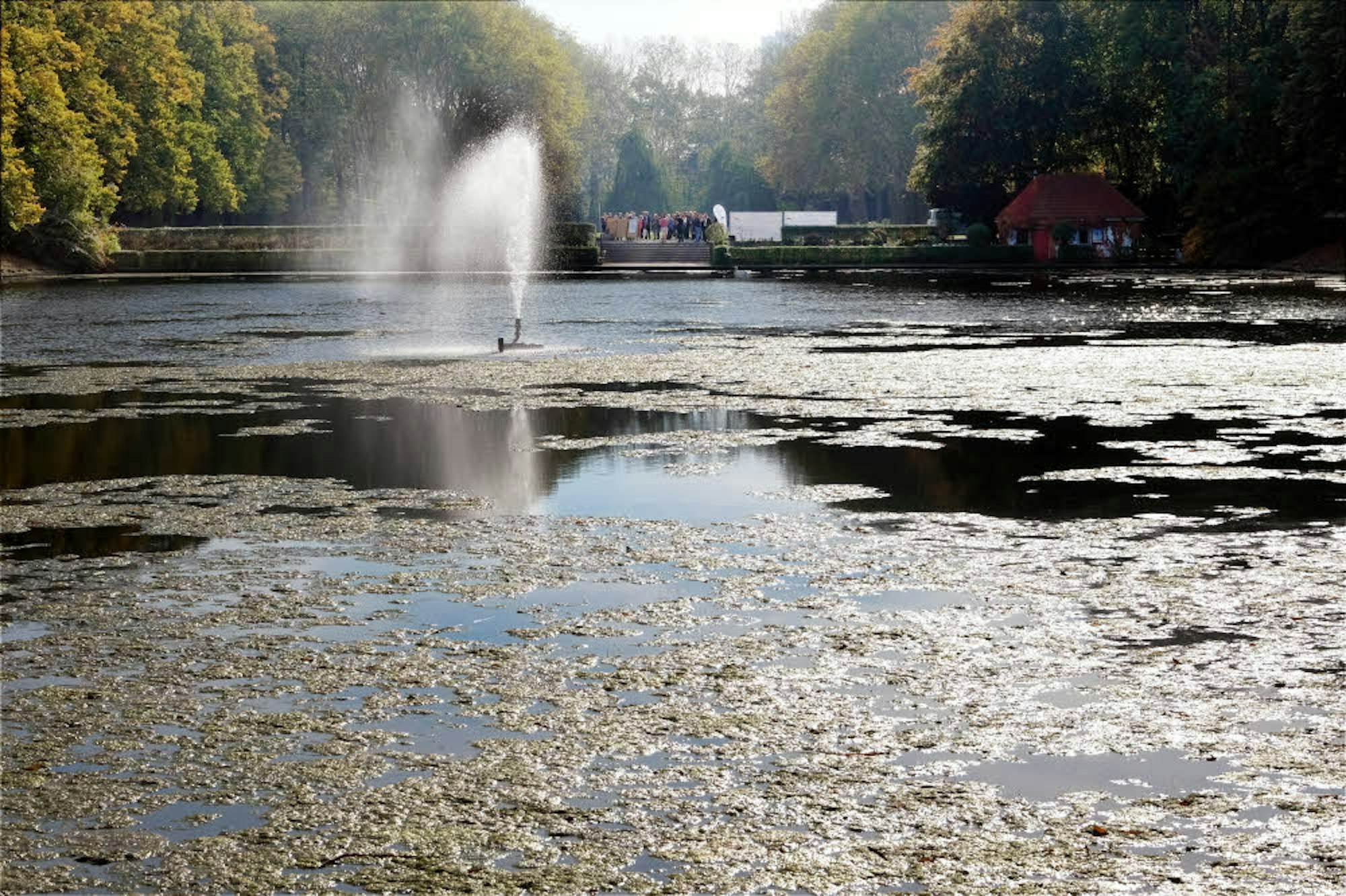 „Außerdem haben wir Schäden an der denkmalgeschützten Anlage festgestellt, etwa die Absenkung der Abdeckplatten an den Randeinfassungen oder die Bewucherung von Teilen der historischen Anlage durch die Sumpfzonen im Weiher“, erläutert Axel Scholle, der das Projekt der Steb leitet.