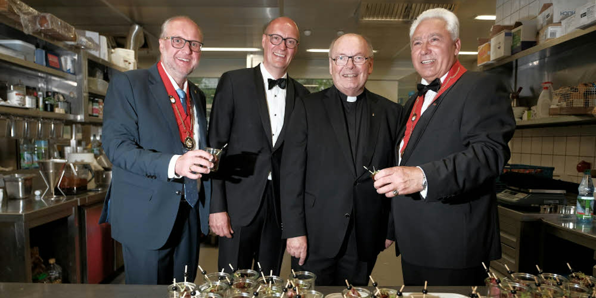 Unter den 160 geladenen Gästen aus Politik, Wirtschaft, Sport, Kultur und Kirche waren die Bürgermeister Elfi Scho-Antwerpes und Hans-Werner Bartsch, Domprobst Gerd Bachner und Domdechant Robert Kleine, Staatssekretärin Serap Güler und Köln CDU-Chef Bernd Petelkau, Steigenberger-Hoteldirektor Peter Mikkelsen, Heribert Klein von Unicef und die die beiden KEC-Spieler Sebastian Uvira und Alexander Oblinger sowie die Ex-Prinzen Marc Michelske und Rainer Herschel, der in diesem Jahr erstmals die Köche-Sitzung geleitet hatte. „Wir machen solche und ähnliche Aktionen nun schon seit 35 Jahren und haben mittlerweile knapp eine Million Euro an das Kinderkrankenhaus gespendet“, sagten Vleer und Robert Wullen, der Sprecher des Kochkunstvereins hörbar stolz.