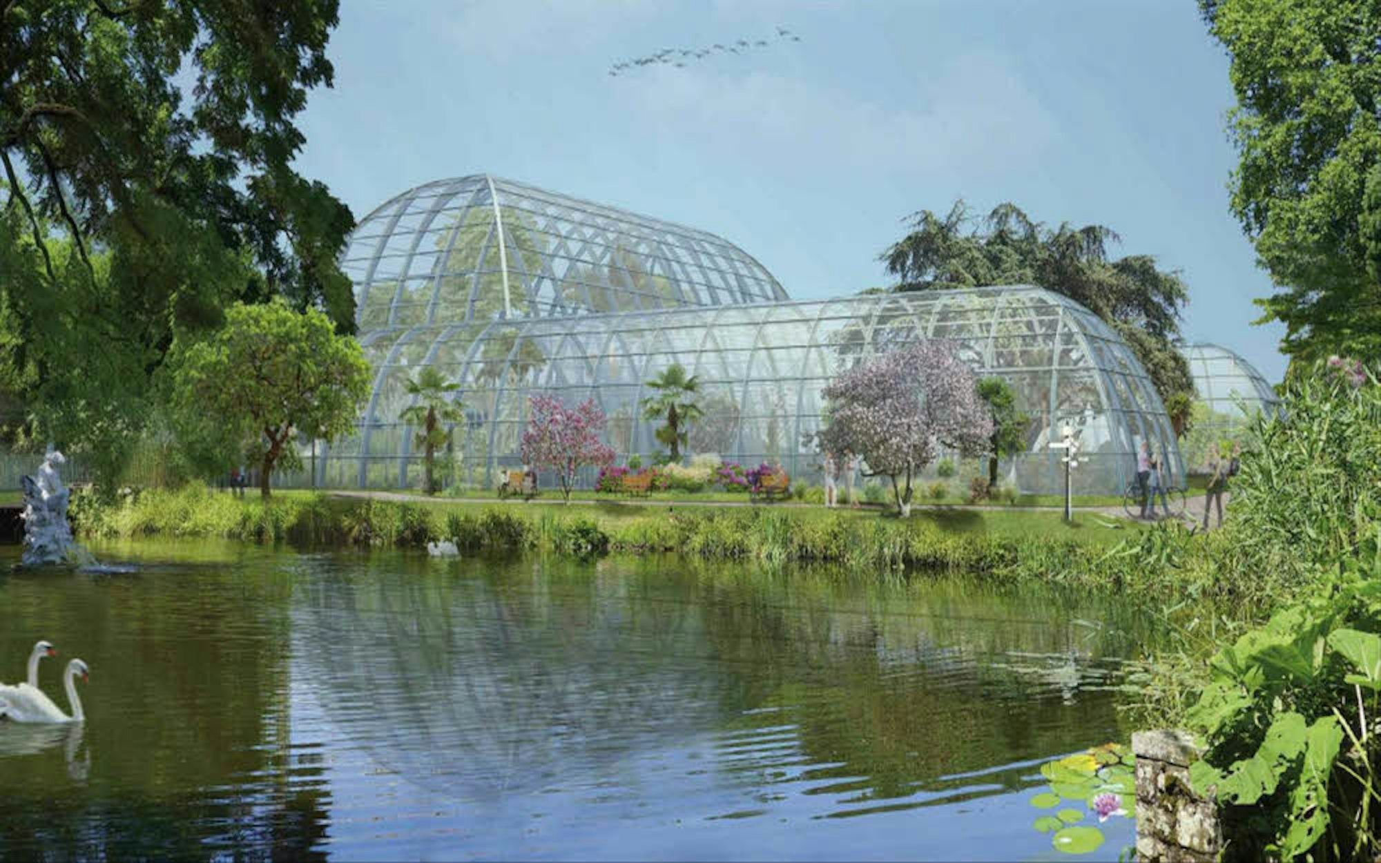Der vom Büro Königs Architekten entworfene Neubau wird vom Grundriss mit dem des Bestandsbaus übereinstimmen, allerdings einige Meter höher sowie deutlich energieeffizienter sein. Die mehr als 60 Jahre alten Gewächshäuser sind so marode, dass sie zwischenzeitlich einsturzgefährdet waren. Erst durch eine Stützkonstruktion konnte die Standsicherheit wiederhergestellt werden.