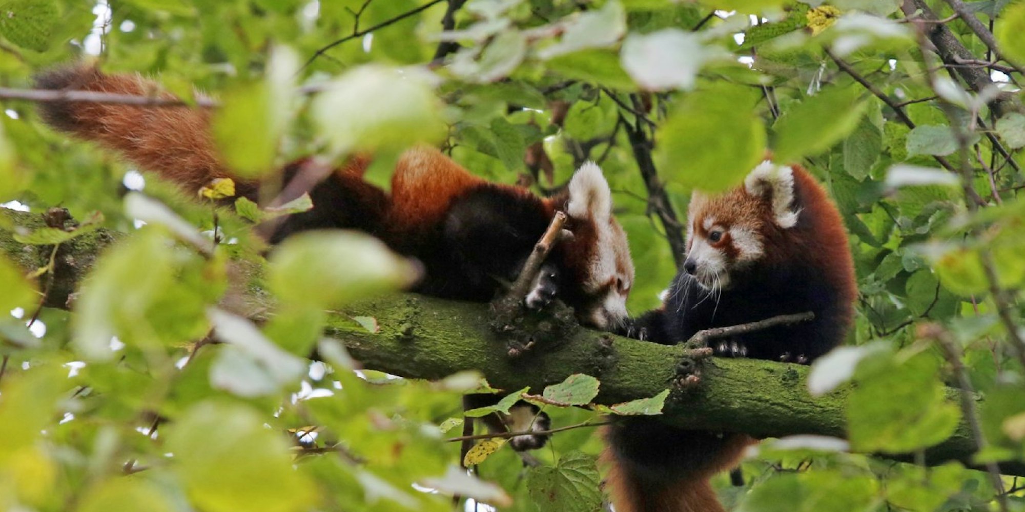 Riehl – Die Familie ist international: Mutter Pili, drei Jahre alt, stammt aus dem Zoo in Barcelona, und Vater Diego, neun Jahre, aus dem Lissabonner Tiergarten; ihre beiden Kinder Agni und und Arun aber sind in Köln geboren. Am Donnerstag sind sie der Öffentlichkeit vorgestellt worden. Die beiden Roten Pandas machten sich allerdings rar und versteckten sich immer wieder im dichten Baumlaub.
