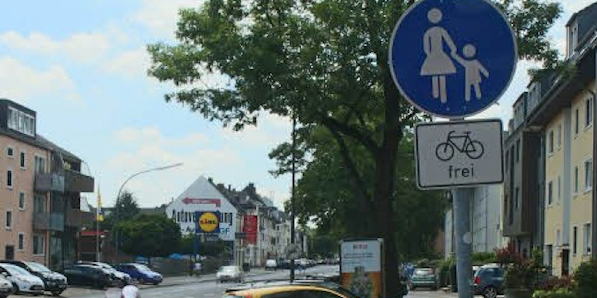Doch entlang der Strecke – wo in Abschnitten auch Autos auf dem Bürgersteig abgestellt sind – stellt sich die Situation nun doch anders dar. Schutzstreifen auf dem Asphalt sucht man vergebens, stattdessen können Radler weiter auf dem Bürgersteig fahren. Der ist jetzt als Fußweg ausgeschildert, mit dem Zusatz „Radfahrer frei“. Im Unterschied zu einem gemeinsamen, gleichberechtigten Fuß- und Radweg – erkennbar an einem Fußgänger- und Fahrrad-Piktogramm auf blauem Grund – gilt bei einem Bürgersteig mit „Radfahrer frei“-Regelung, dass Fußgänger dort Vorrang genießen. Radler müssen verstärkt Rücksicht nehmen und ihr Tempo anpassen. Die rote Radweg-Markierung auf den Bürgersteigen in beiden Richtungen wurde entfernt.