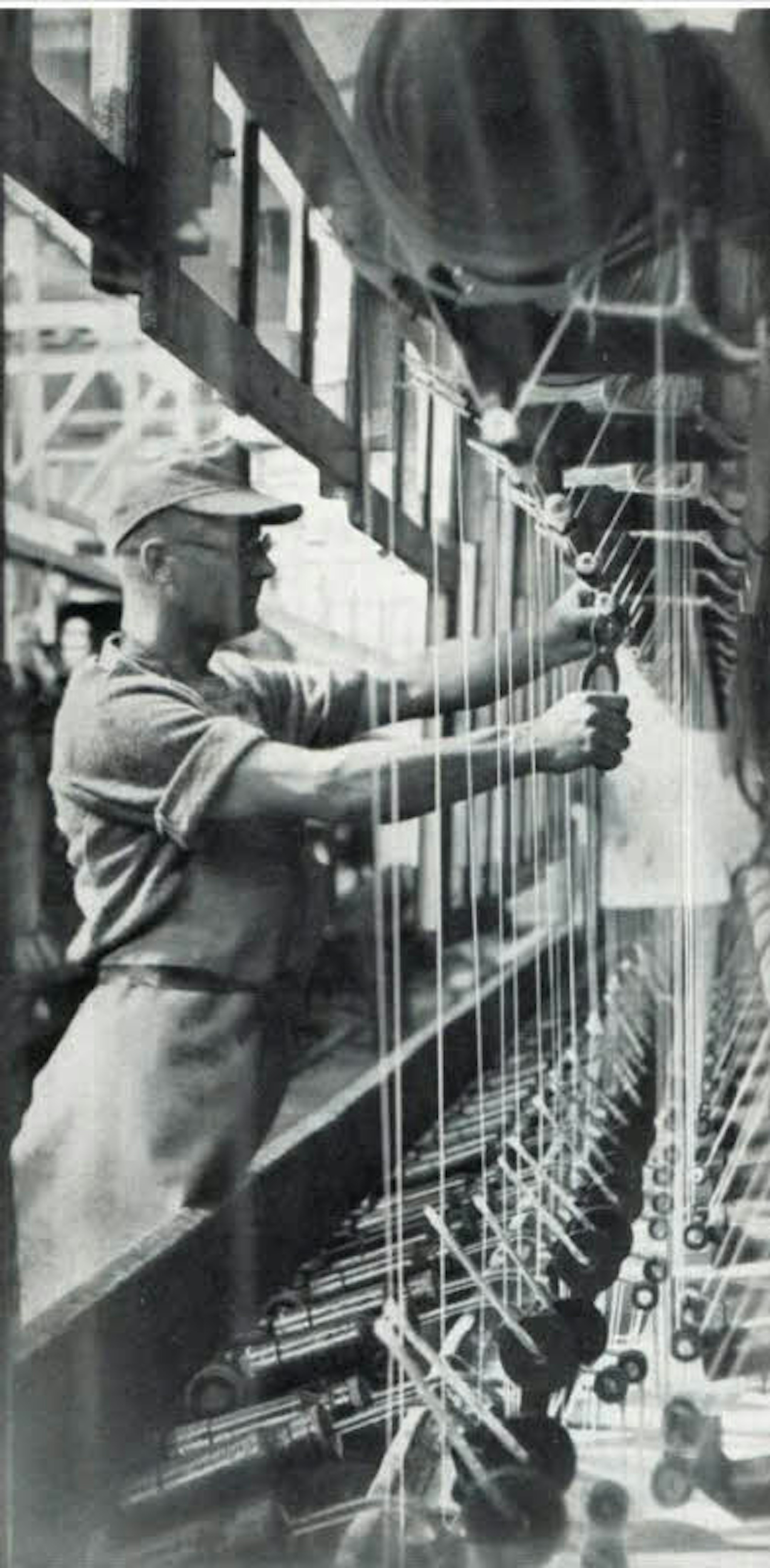 Ein Arbeiter stellt in der Kölner Fabrik Kunsterfasern her.