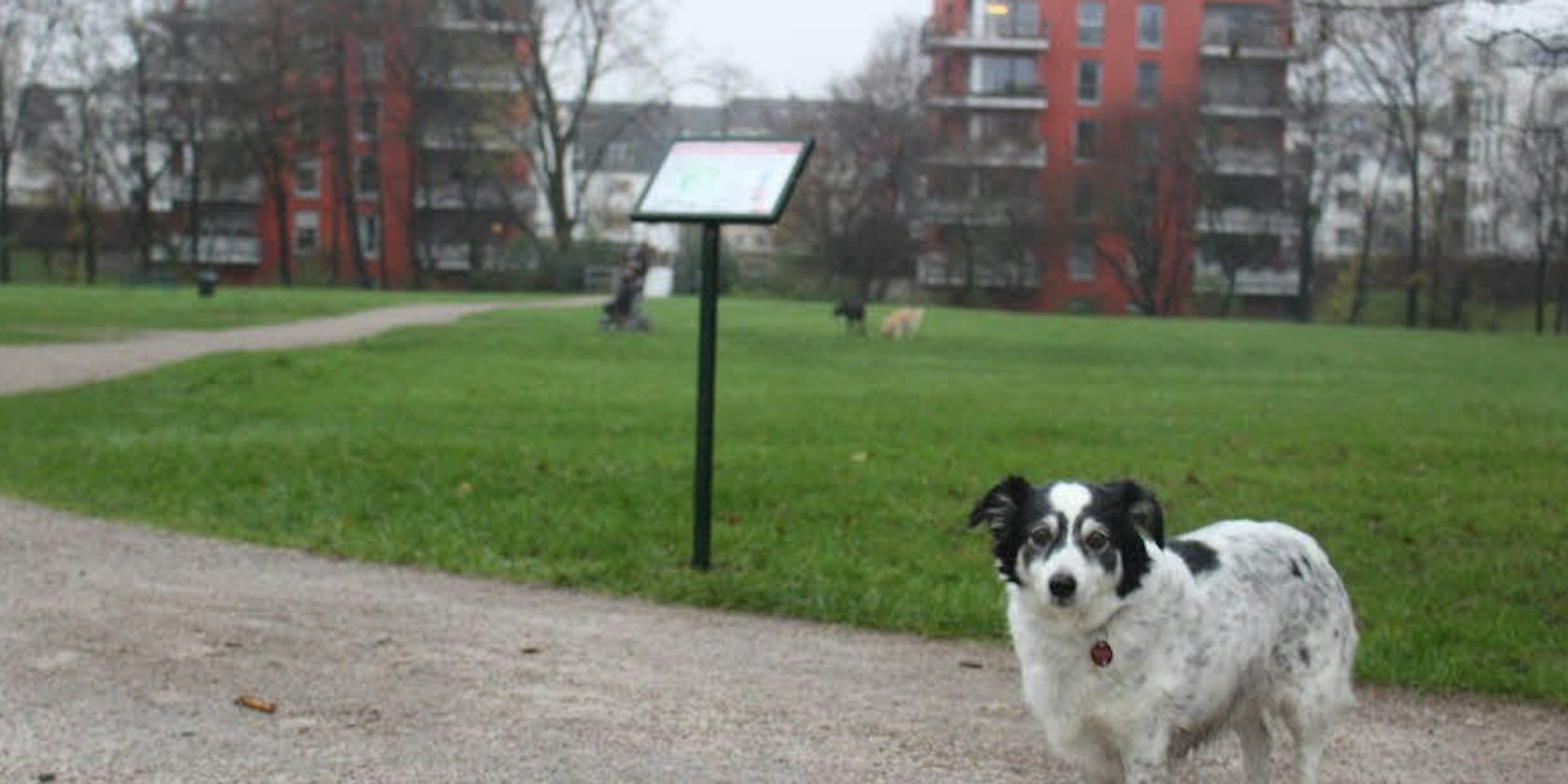 Nippes – Es sind knapp 100 Meter Strecke durch den Nordpark, die für Unmut bei einigen Hundebesitzern sorgen dürften: Im westlichen Teil des Parks, angrenzend an die 2007 fertig gestellte Siedlung „Em Parkveedel“, liegen mehr als 10.000 Quadratmeter Hunde-Freilauffläche. Vom Parkveedel aus gelangt man über eine abschüssige Rampe in die Grünfläche.