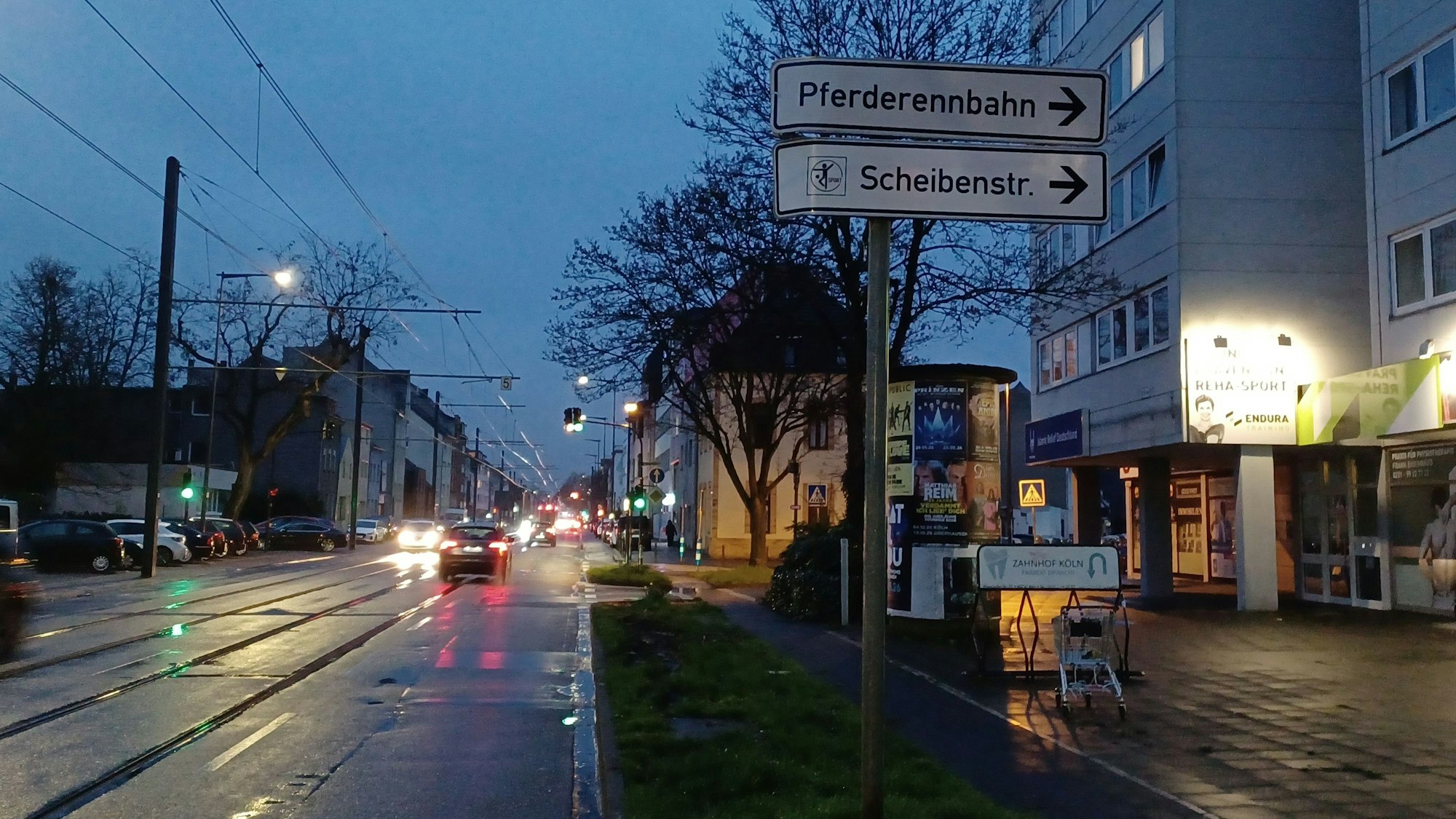 Weil man von der Neusser Straße nicht links in die Scheibenstraße abbiegen kann, wird der Verkehr in Richtung Rennbahn durch den Weidenpescher Westen gelotst. Dies könne entfallen, so die BV Nippes.