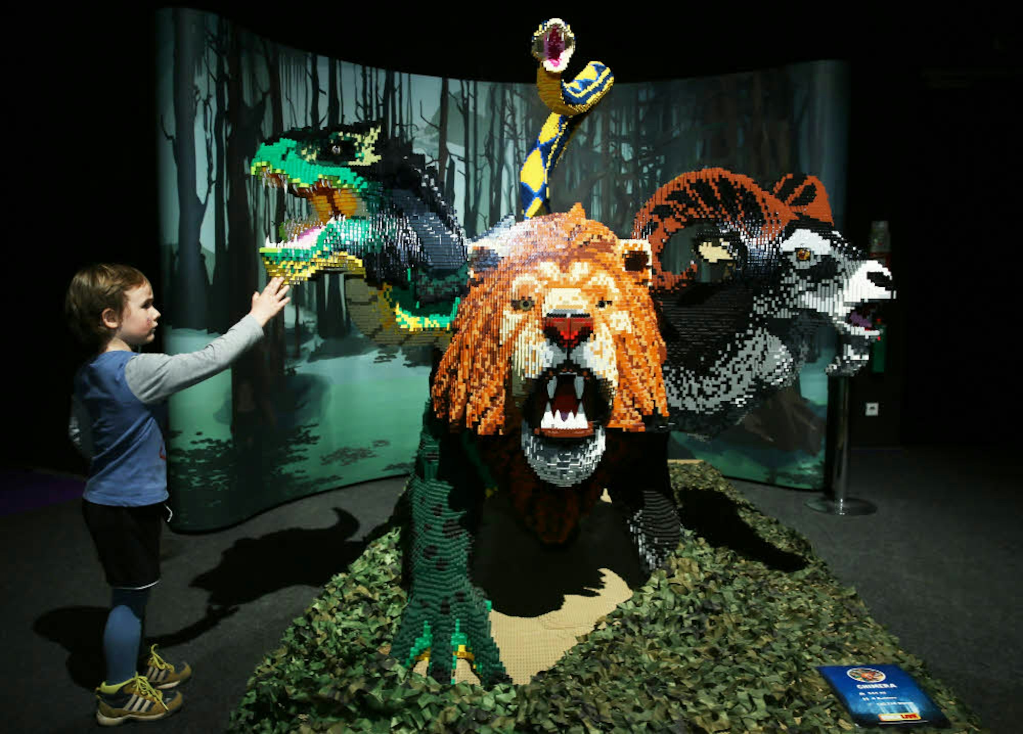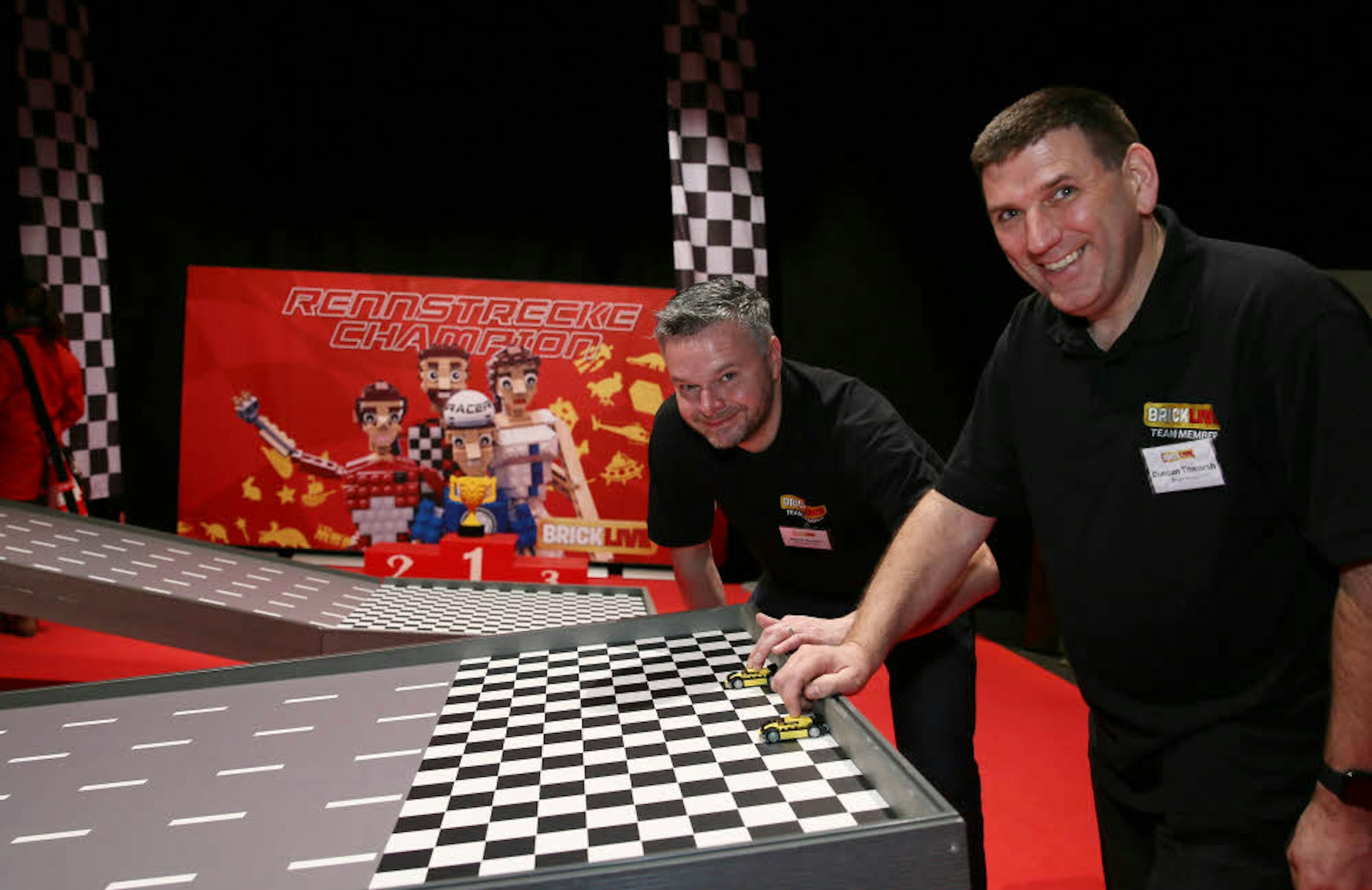 Die martialischen Fabelwesen, die aus der Firma des professionellen Lego-Konstrukteurs Duncan Titmarsh stammen und jeweils mehrere hundert Kilo schwer sind, haben da schon länger Bestand. Der 48-jährige Engländer nennt sich selbst Lego-süchtig und zeichnet unter anderem für eine 13 Meter hohe Londoner Tower Bridge aus 5,8 Millionen Steinchen verantwortlich – die größte Lego-Skulptur aller Zeiten. Am Freitag konnte es Titmarsh auch eine Nummer kleiner. Er und Mark Guest, der als Kreativdirektor die Ausstellung gestaltete, bastelten sich im Handumdrehen kleine Rennwagen zusammen und ließen sie eine Rampe heruntersausen. Wie kleine Jungs eben.