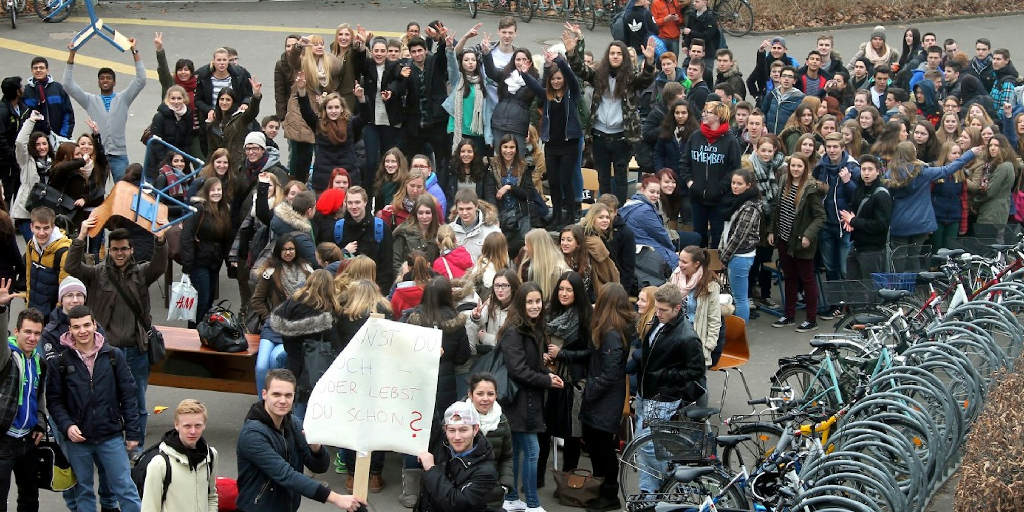 Gymnasium in Köln-PorzSchüler-Protest gegen Stundenplan