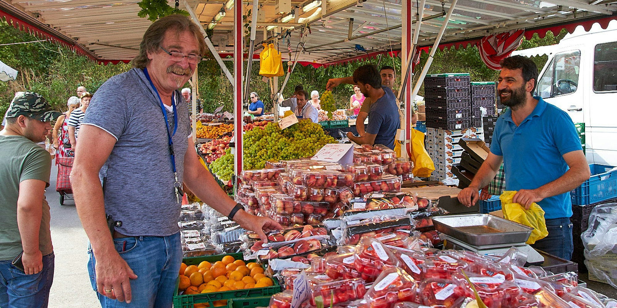 „Fast alles ist Retour-Ware von Supermärkten“, sagt Tekin Güngör, der Obst auf den Trödelmärkten verkauft. Bei ihm kostet etwa ein Kilo Nektarinen nur 1,30 Euro. „Am Ende des Tages verschenken wir Ware, die wir nicht mehr verkaufen können“, sagt der Händler.