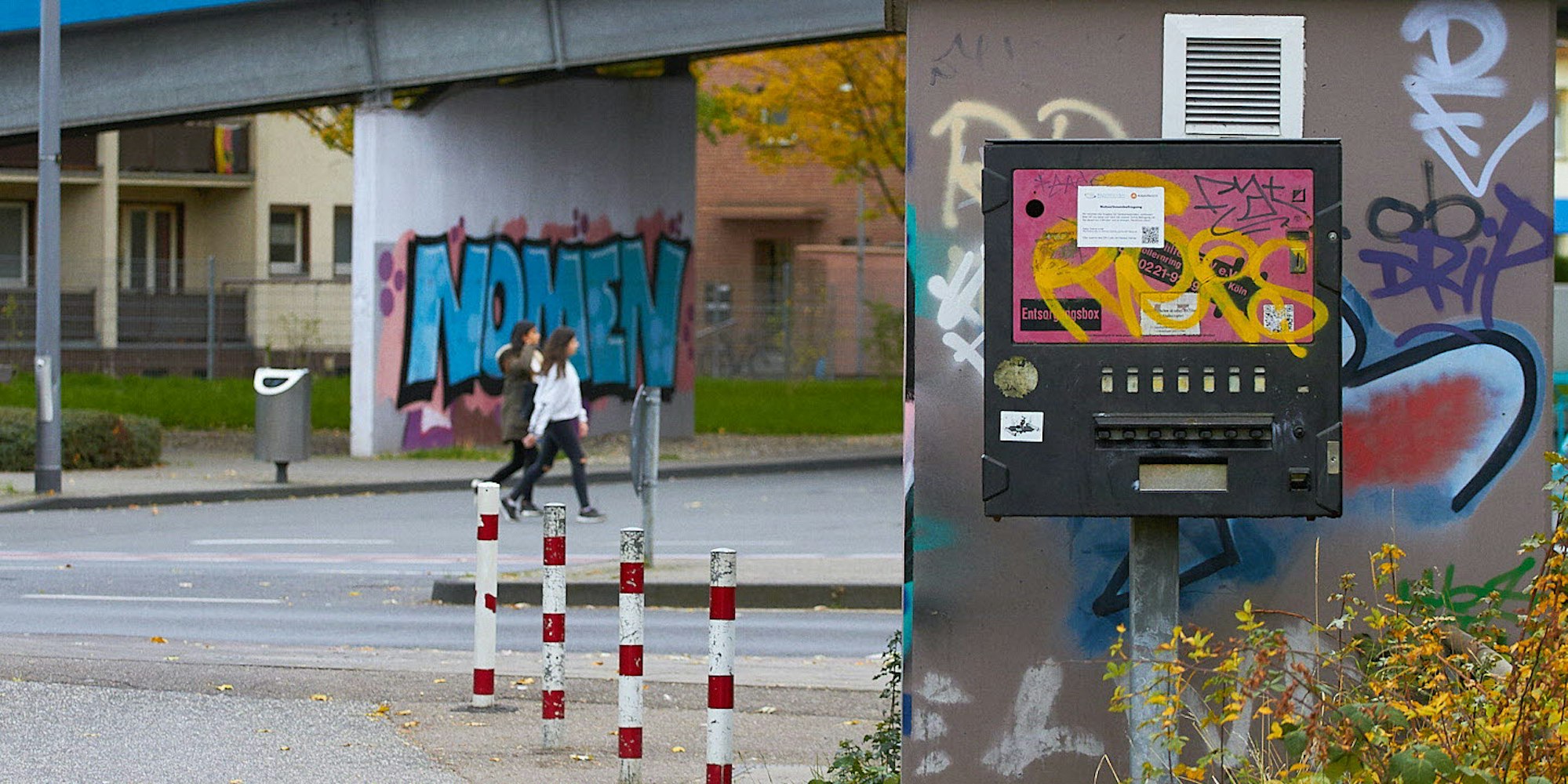 Seit über zehn Jahren steht der Spritzenautomat, der Drogenabhängigen saubere Spritzen liefert, nur rund 40 Meter entfernt vom Jugendzentrum an der Glashütte. In 2005 ist der umfunktionierte Zigarettenautomat auf Initiative der Kölner Aidshilfe aufgestellt worden. Ziel ist es, die Ansteckungsgefahren für Drogenabhängige mit HIV zu reduzieren.