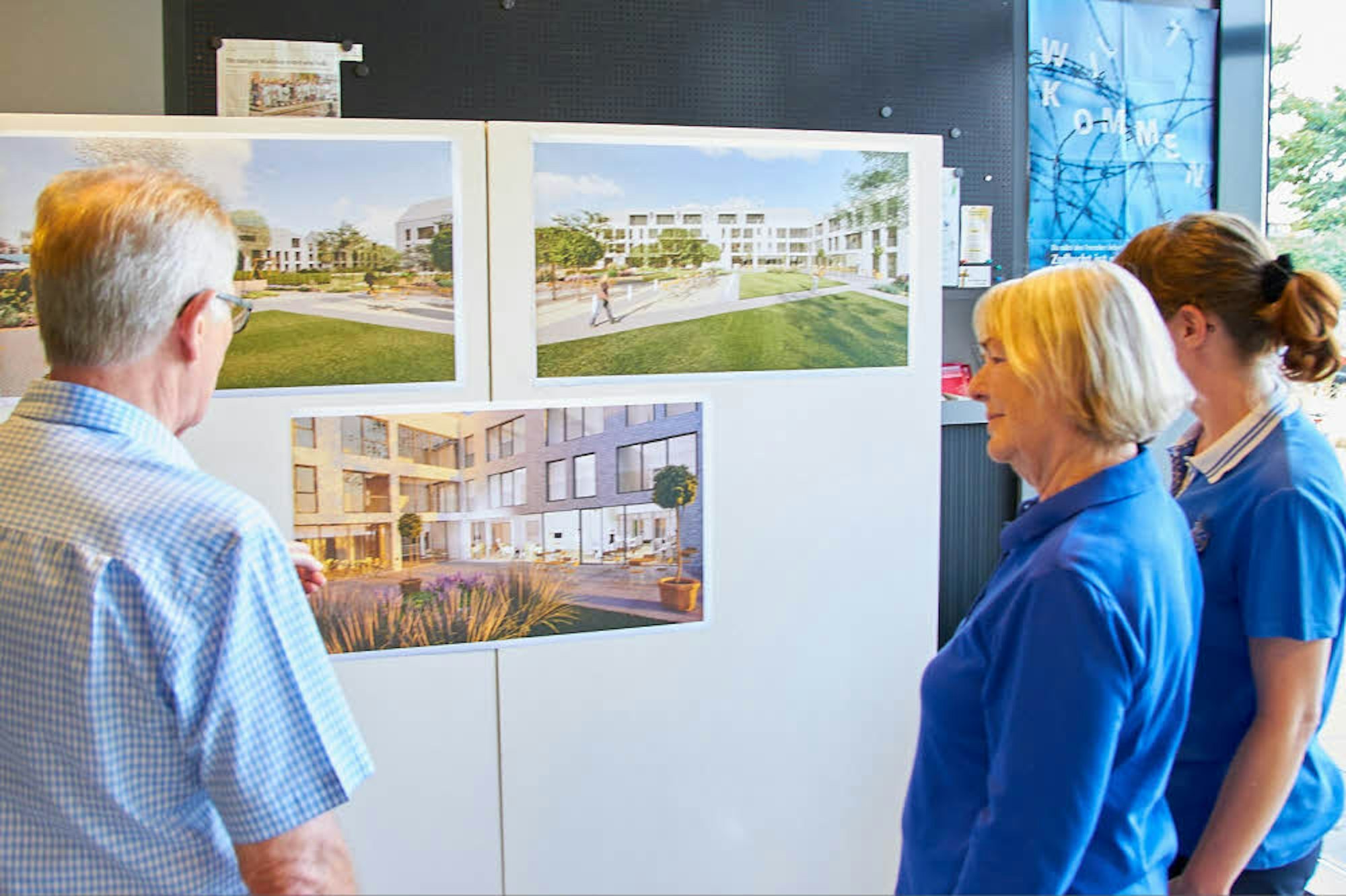 Interessiert begutachteten die Anwesenden die ausgehängten Visualisierungen der neuen Gebäude.