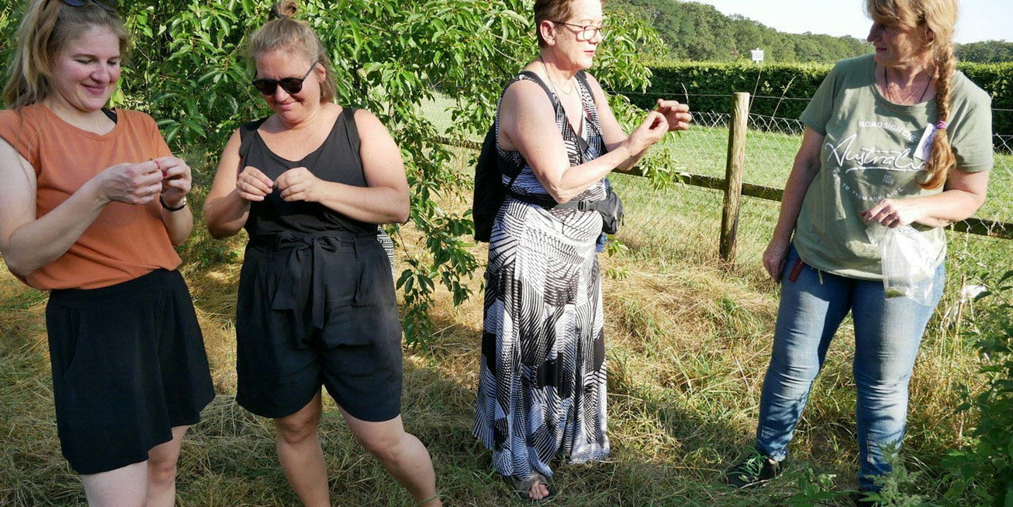 Erst vor kurzem hat sie ihre Ausbildung zur Kräuterpädagogin an der Gundermann-Naturerlebnisschule erfolgreich beendet und führt nun die etwa 15 interessierten Spaziergänger auf dem Gelände um Gut Leidenhausen von einem Wildkraut zum nächsten. Begeisterte Köchinnen wie Birgit Fink und Sigrid Becker profitieren von ihrem Wissen über die kulinarischen Verwendungsmöglichkeiten, Barbara Schmitz will sich im Erkennen und Benennen der Pflanzen üben. „Wie oft gehe ich spazieren und weiß nicht, was am Wegesrand steht. Das ärgert mich einfach.“