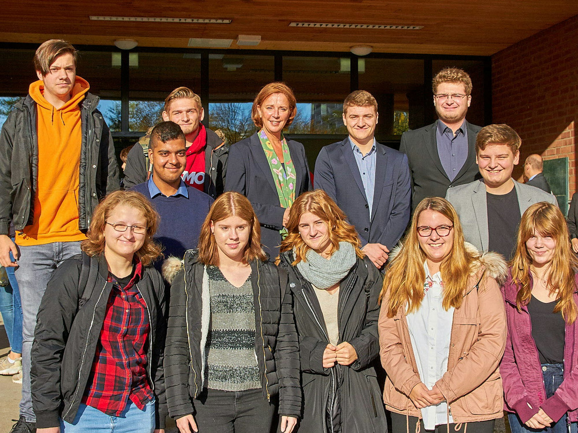 Die Ministerin (oben Mitte) und einige der engagierten Schüler