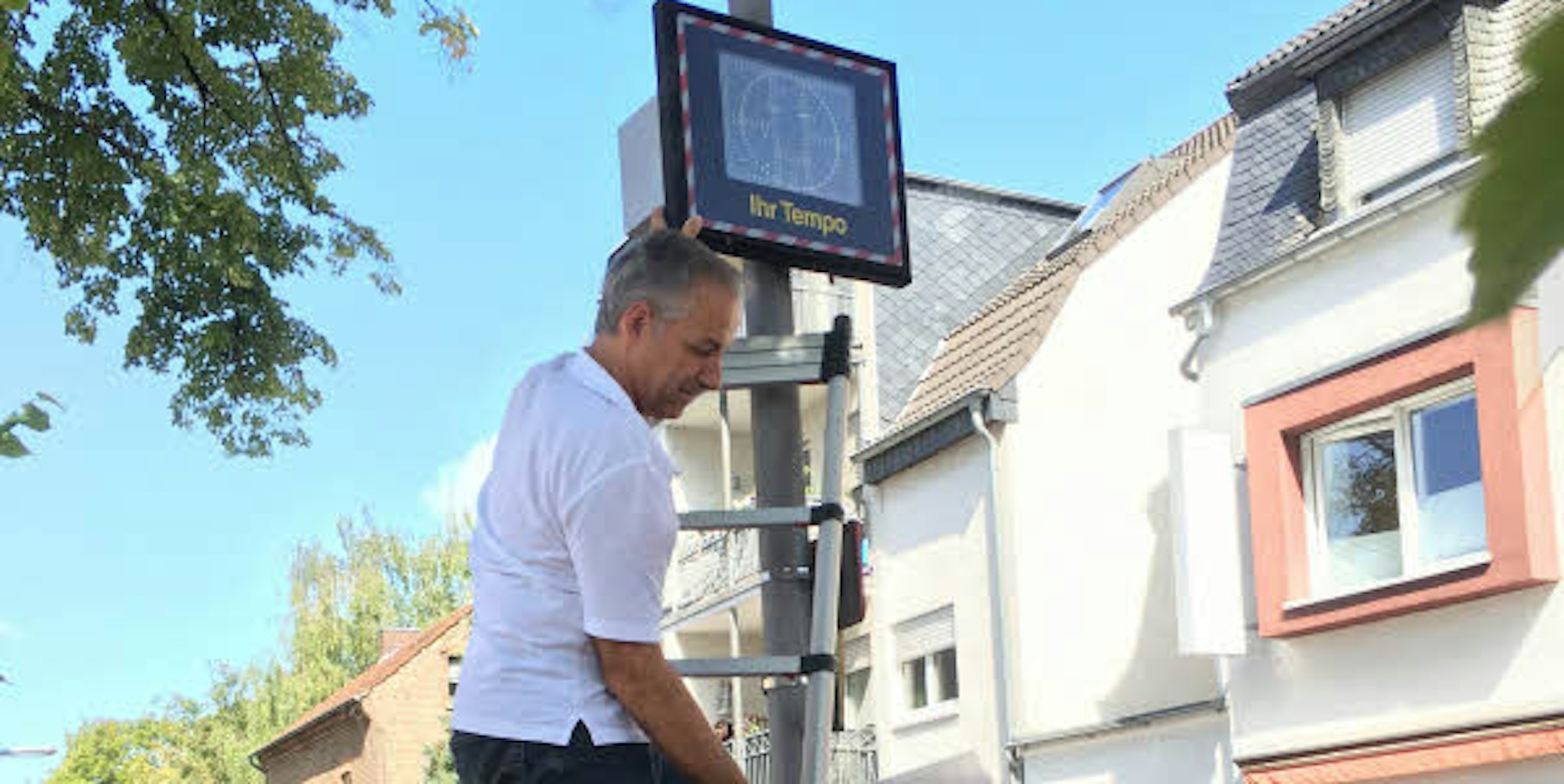 Ensen-Westhoven – Verblüffend, was ein mit wenigen Strichen skizziertes, trauriges Gesicht bewirken kann: Wenn das betrübte Gesicht auf dem Display am Laternenmast rot aufleuchtet, gehen die allermeisten Autofahrer sofort vom Gas und senken ihre Fahrgeschwindigkeit. Drei solcher Display-Anlagen, die mit grünen Smileys die langsamen Fahrer belohnen und mit roten Sadys auf Fehlverhalten aufmerksam machen, hat die Vernetzung der Porzer Bürgervereine in den vergangenen Jahren angeschafft und installiert sie im Vier-Wochen-Rhythmus an dazu geeigneten Orten im gesamten Stadtbezirk.