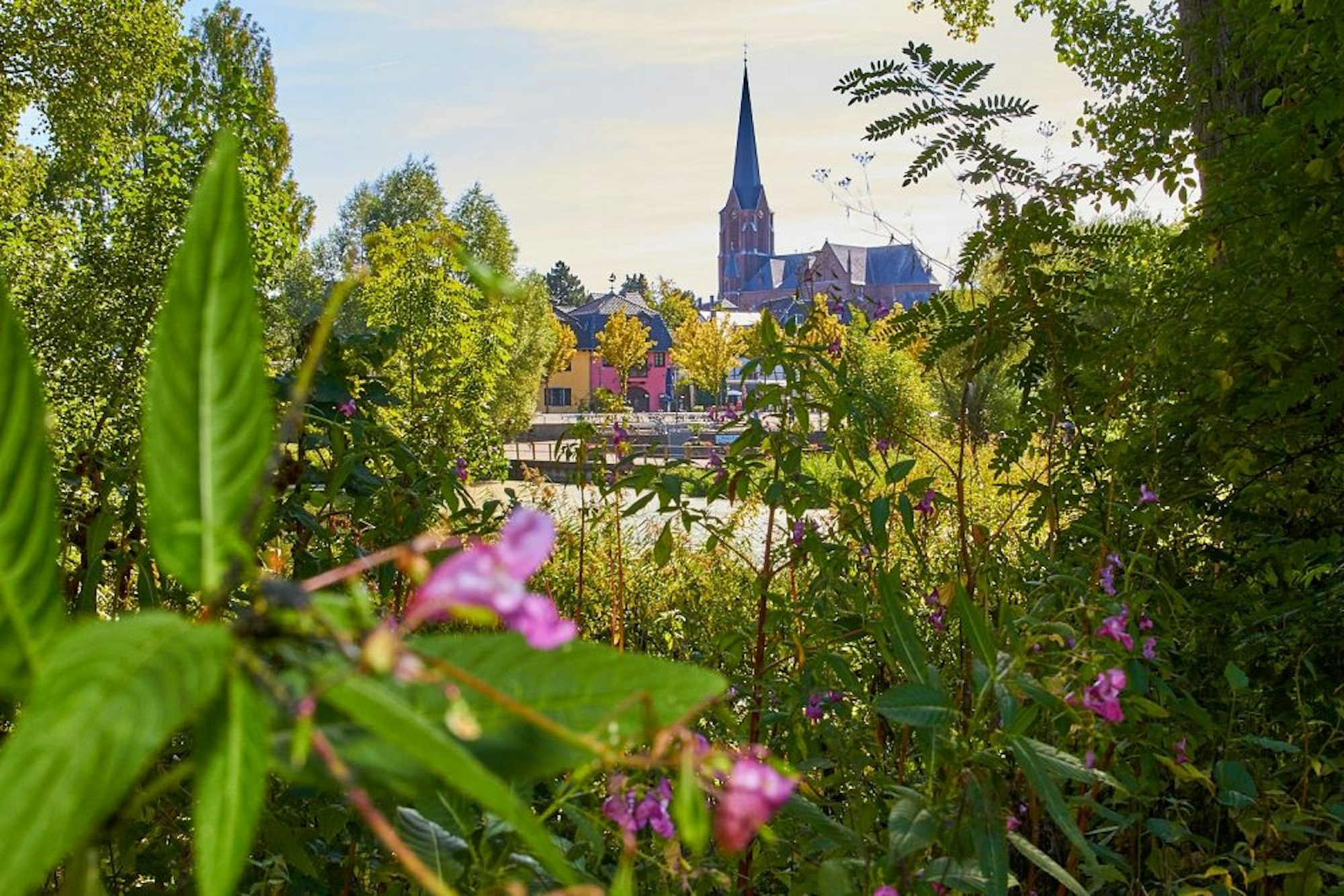Unterhalb des Rathauses hat man einen Blick auf den Rhein