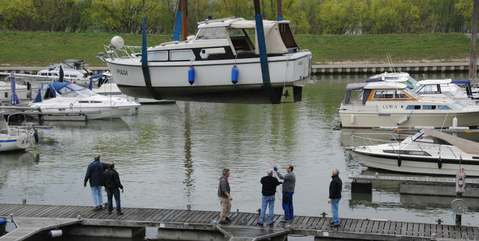 Boote werden ins Hafenbecken gehobenZündorfer eröffnen Wassersport-Saison
