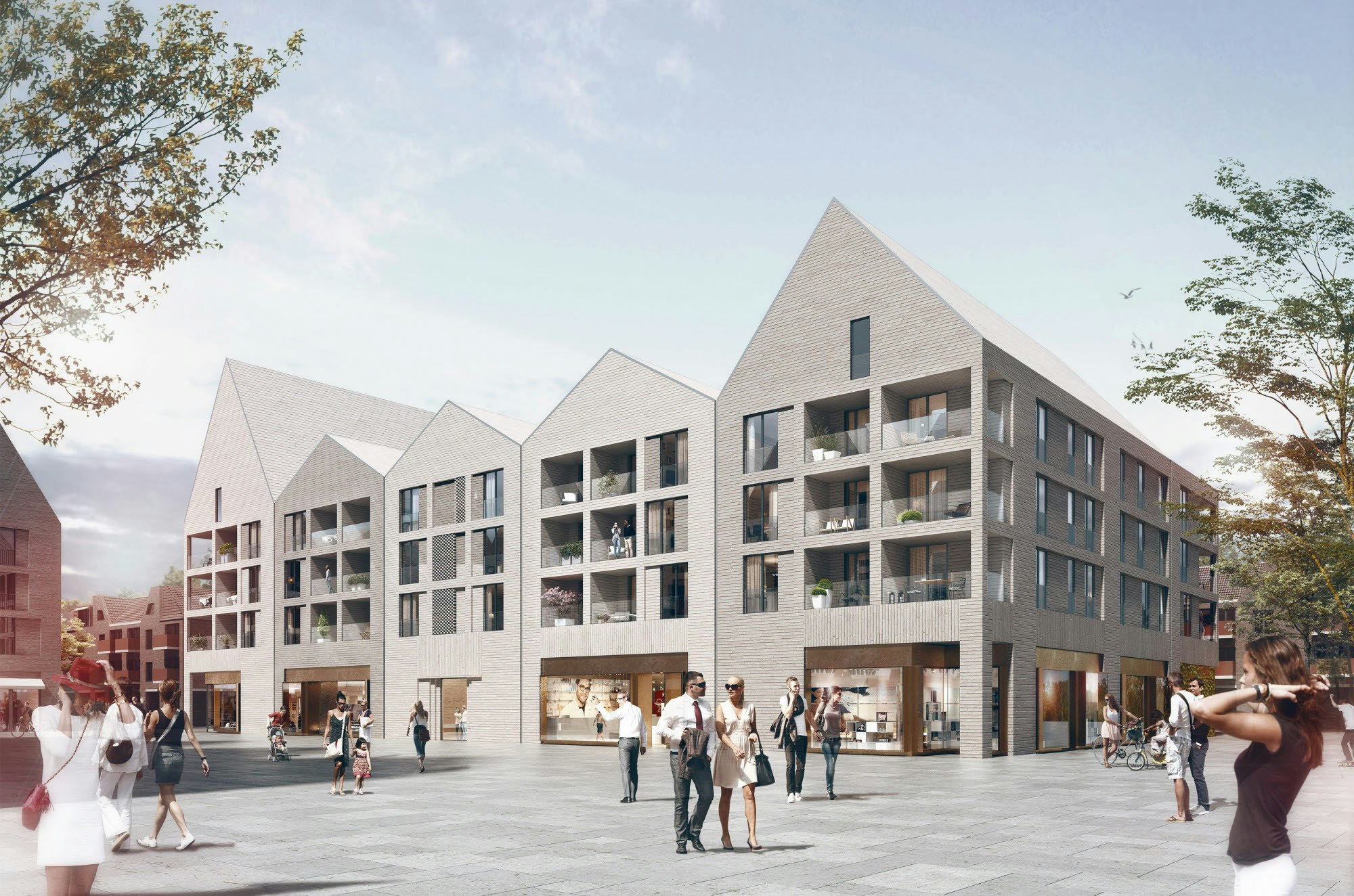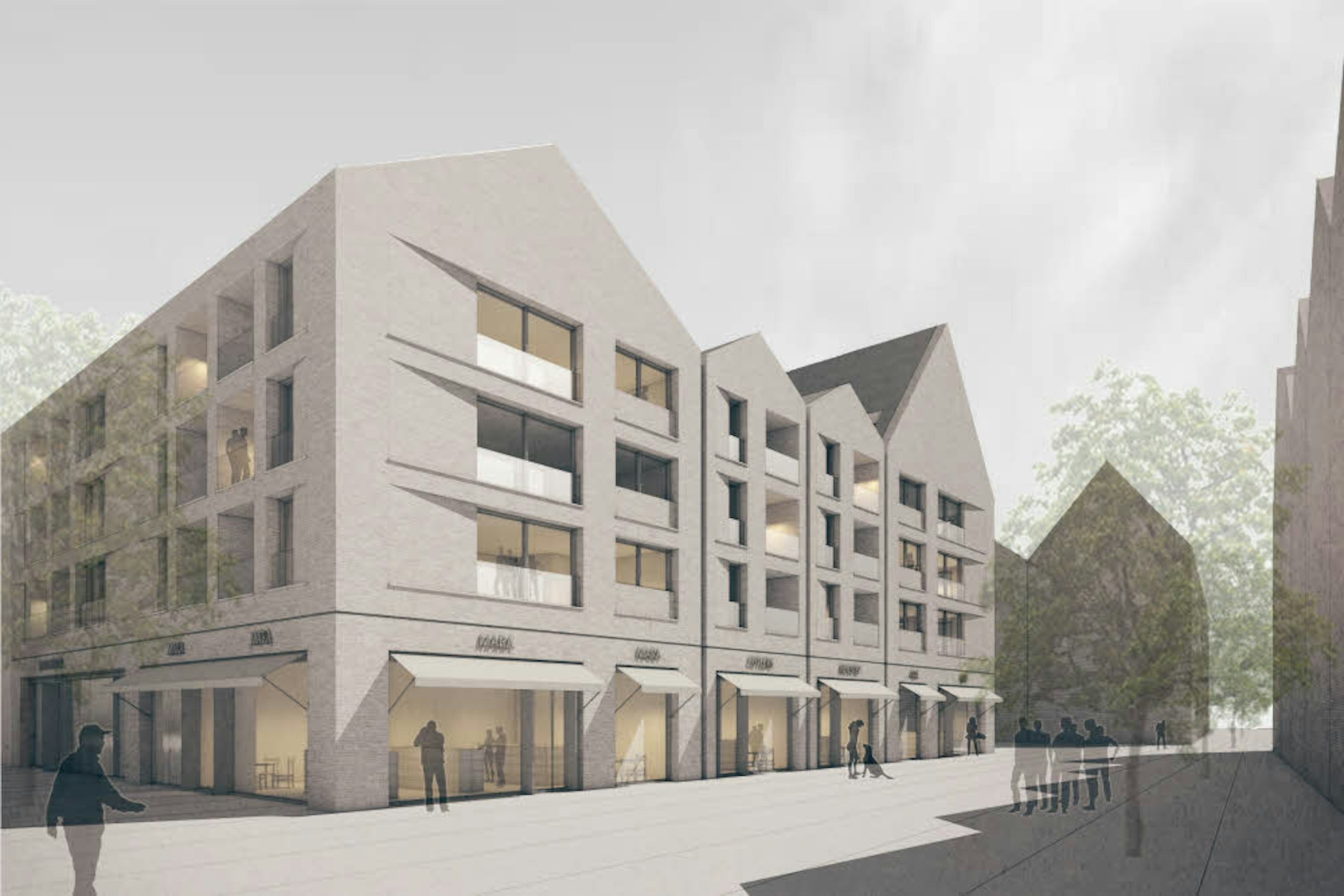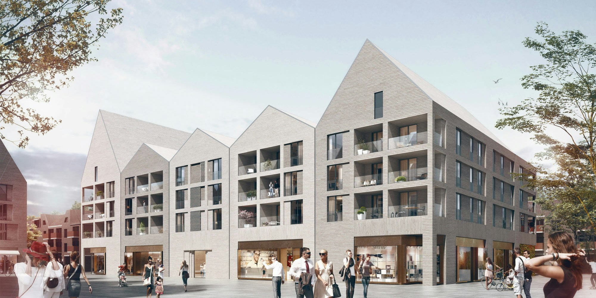 Eine Verbindung zwischen Großbauten wie dem City-Center und der kleinteilig gestalteten Bahnhofstraße zu schaffen, gelang nach Einschätzung des Preisgerichts zwei Kölner Büros am besten. Molestina Architekten setzten sich für Haus 2 durch, Kaspar Kraemer Architekten für Haus 3.
