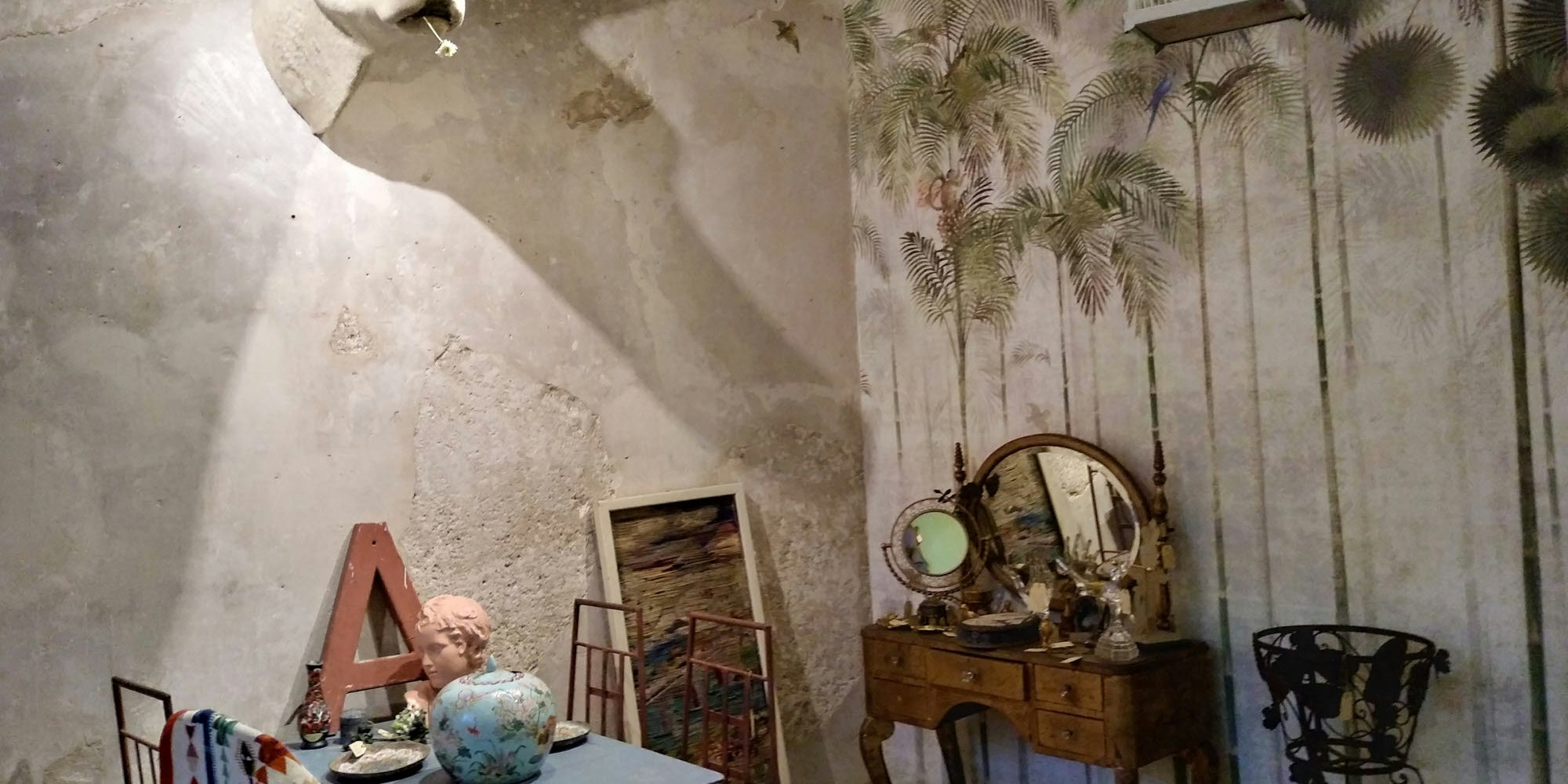 Südstadt – Goldene Kerzenständer und bunte Buchstaben, leuchtende Rokoko-Lampen und Werbeschilder aus vergangenen Zeiten. Betritt man das „Leo Leo“ am Ubierring und steigt die hölzernen Eingangstreppen hinab, warten die unterschiedlichsten Möbel, Dekoartikel und Gegenstände auf die Besucher.