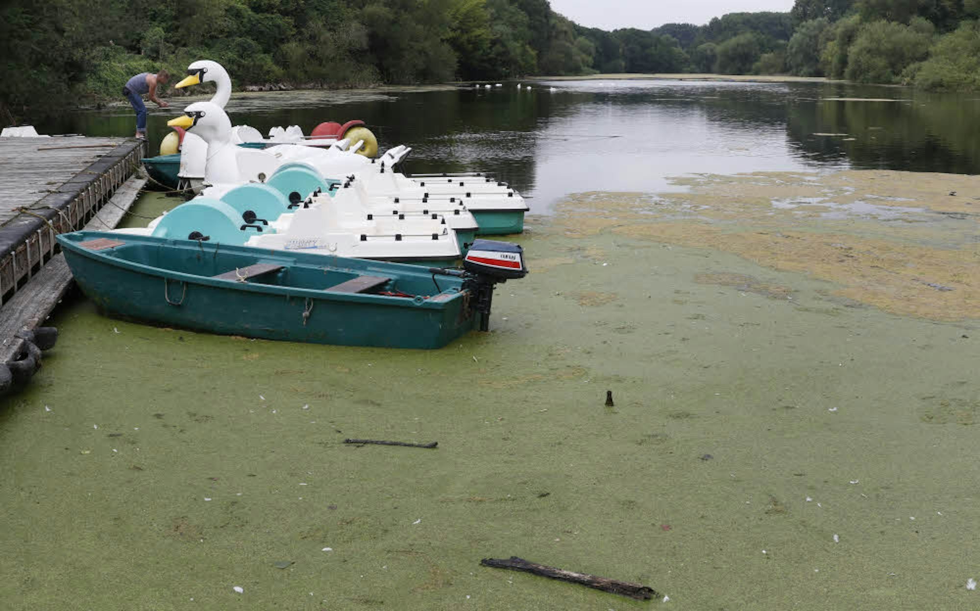 Klein war es leid, wieder und wieder die Algenproblematik in beiden Groov-Gewässern zu beklagen, aber keine wirksame Hilfe zu bekommen. Der Betreiber der Gaststätte Groov-Terrassen führt seit dem Jahr 2000 auch den Bootsverleih an der Groov – und dieser Geschäftszweig war im Frühjahr gleich wieder zum Erliegen gekommen, kaum dass die Ruderboote und Tretboot-Schwäne aus dem Winterlager zurück auf dem Wasser waren. „Mit den ersten Sonnenstrahlen waren die Algen wieder da, in solchen matschiggrünen Massen, dass Rudern und Tretbootfahren nicht mehr möglich waren“, sagt Günter Klein.