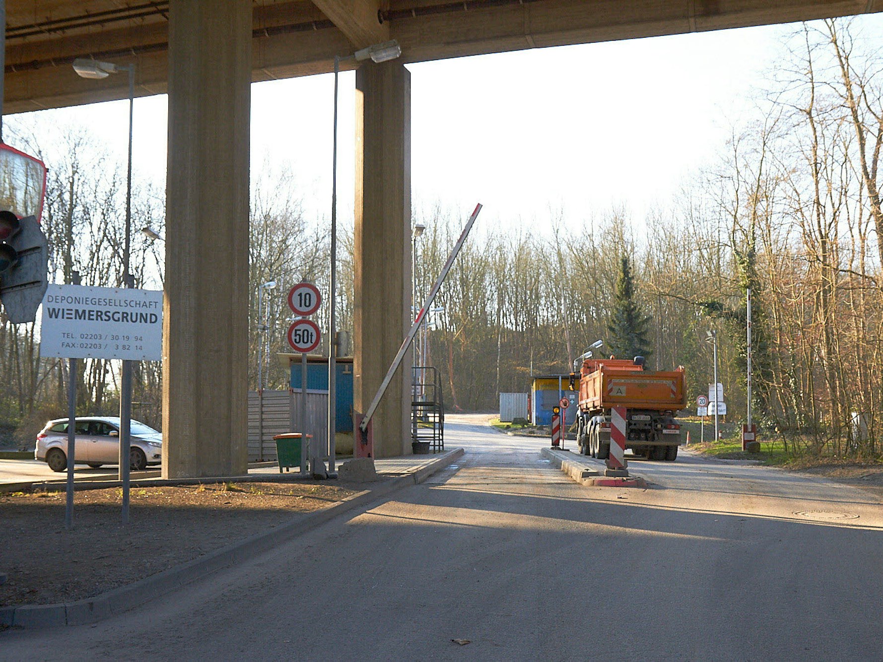 Die Zufahrt zur Deponie ist direkt unter dem Östlichen Zubringer an der Gremberger Straße.