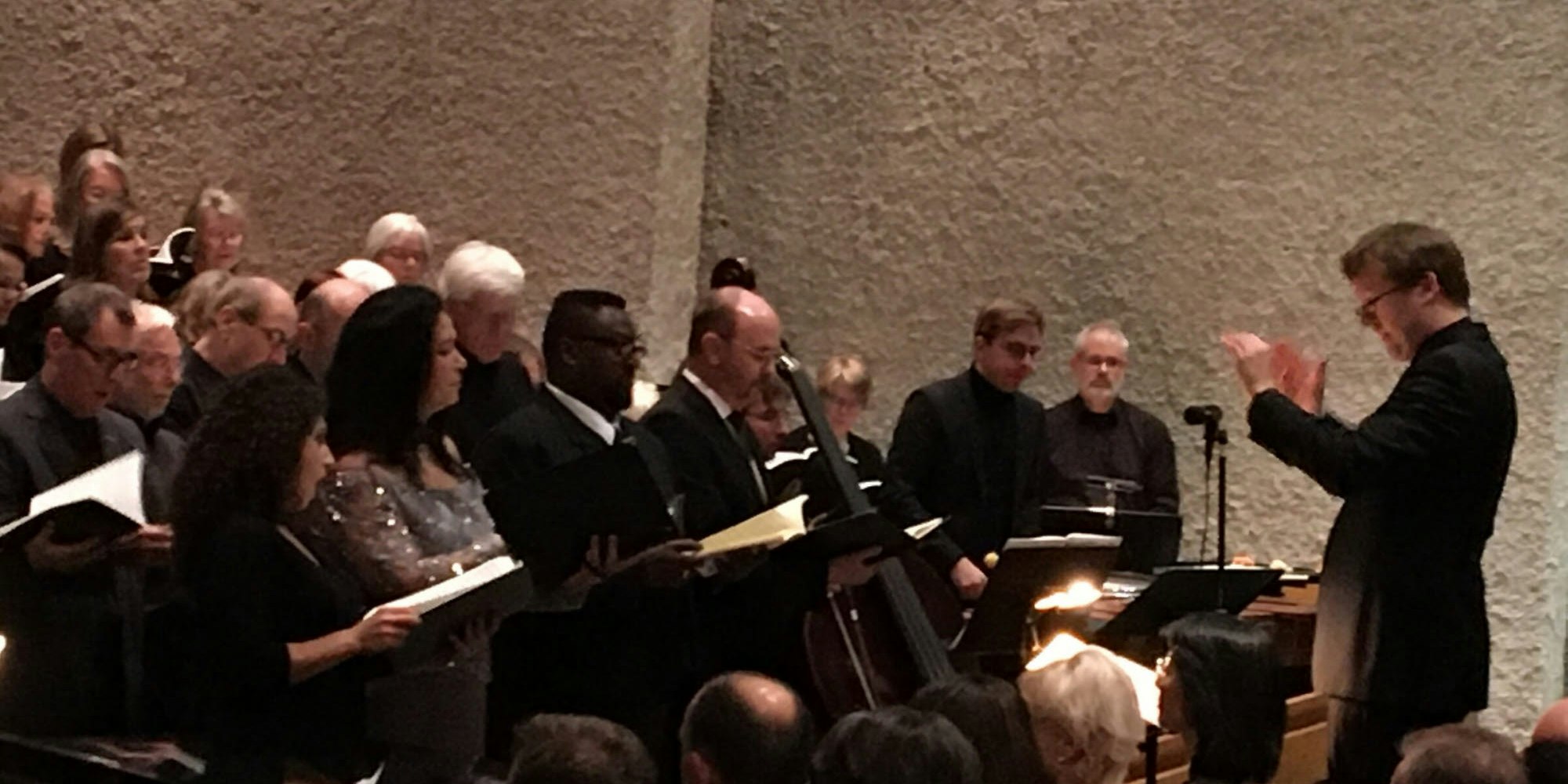 Mit der Wahl der Musiker im kleinen Orchester, zu dem ein Horn, ein Xylophon und eine Pauke gehörten, bewiesen die Konzertleiter eine glückliche Hand. Das galt mindestens im gleichen Maß für die Wahl der Solisten. Mine Yücel (Sopran) begeisterte in der Anrufung des verzeihenden Gottes. Yamina Maamar (Mezzosopran) ließ stimmgewaltig die Wendung von Trauer zu süßem Trost aufscheinen. Ray M. Wade (Tenor) überzeugte in tiefem Gram und luzider Hoffnung und Thomas Peter (Bassbariton), der als Ersatz für Ralf Rhiel sang, verkörperte Schuld, Zerknirschung und Flehen sehr eindrucksvoll. Anhaltender Beifall belohnte Ensemble und Doppel-Leitung.