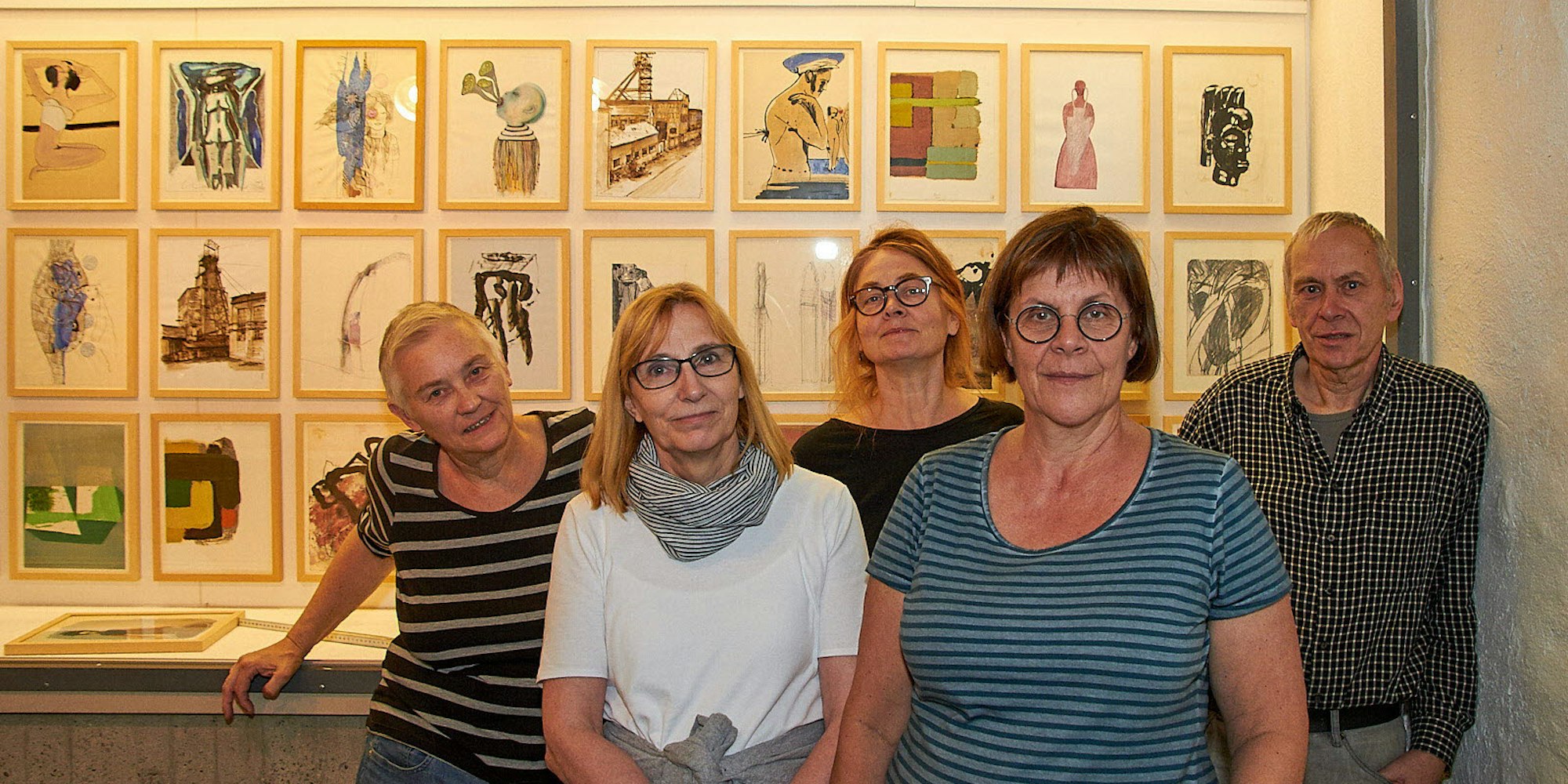 Bereiten die Ausstellung vor: Astrid Karuna (Künstlerin, v.l.), Heidi Schulte-Carstens (Geschäftsführerin Verein Wehrturm ), Karen Betty Tobias (Künstlerin), Antje Winkler-Suesse (1. Vorsitzende Verein Wehrturm), Peter Kerschgens.